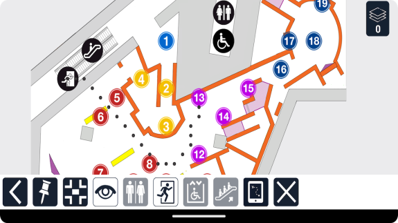 Para facilitar a visita a esta exposición, a súa app homónima aproveita a funcionalidade de xeolocalización dos dispositivos móbiles determinando en que punto está a persoa visitante dentro da sala. En función disto, mostraralle información sobre as obras expostas ou os puntos de interese máis próximos.