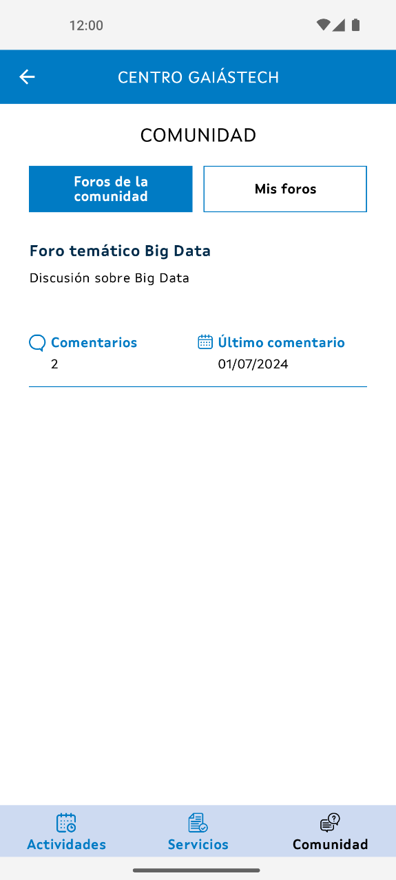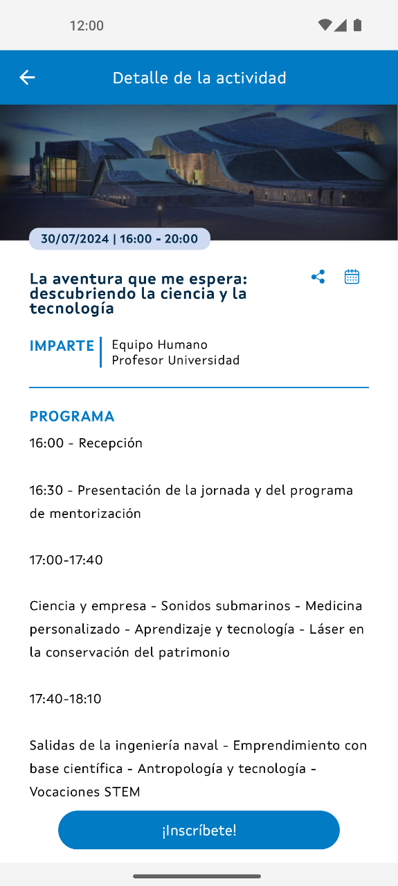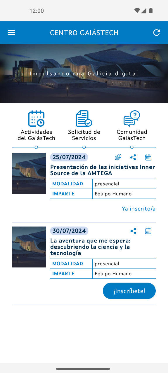 App para consultar e inscribirse en actividades desarrolladas en el Centro GaiásTech.