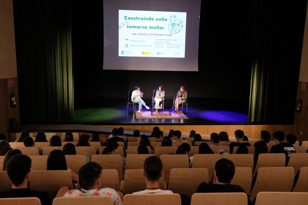 La directora xeral de Traballo Autónomo e Economía Social, Marta Mariño, participó hoy en Ordes en la jornada Construyendo una comarca mejor. Nuestras cooperativas, en la que se presentaron los proyectos desarrollados por alrededor de medio centenar de personas entre profesorado y alumnado de 3º y 4º de la ESO de las materias relacionadas con emprendimiento, iniciación a la actividad emprendedora y empresarial de cuatro centros de la comarca (CPI Xanceda, CPI Ponte Carreira, CPI O Cruce e IES Maruxa Mallo). Allí, Mariño destacó la apuesta de estas cooperativas escolares por la sostenibilidad y por la generación de empleo pegado al territorio en el campo de la economía social, una fórmula empresarial que -dijo- apoya de manera decidida la Xunta de Galicia.