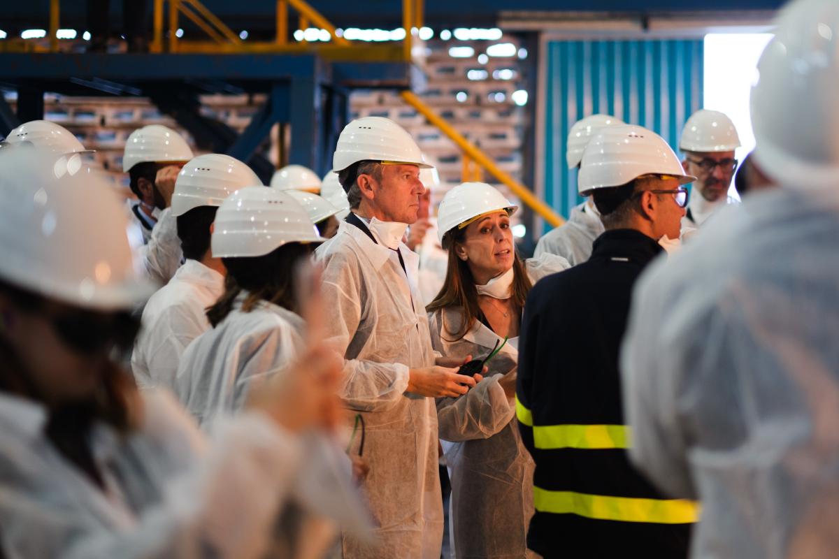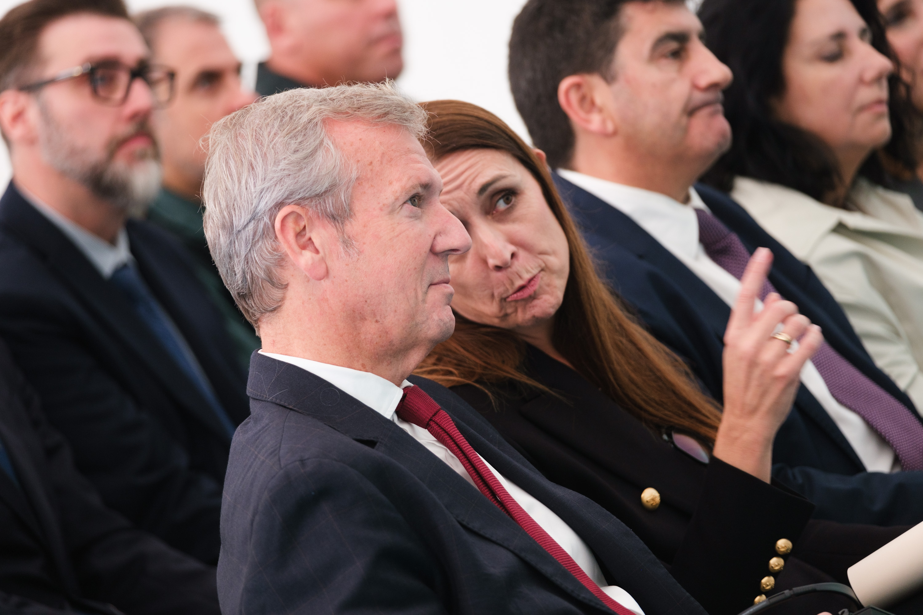 El presidente de la Xunta, Alfonso Rueda, acompañado por la conselleira de Economía e Industria, María Jesús Lorenzana, destacó hoy la apuesta del Ejecutivo gallego por la creación de empleo en la Costa da Morte y la industrialización sostenible de Galicia.
