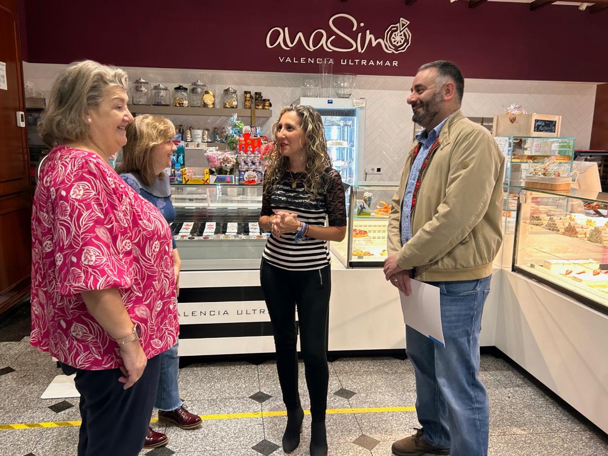La delegada territorial de la Xunta en Ferrol, Martina Aneiros, informó sobre la resolución de esta convocatoria de la Consellería de Empleo, Comercio y Emigración durante una visita a la pastelería y confitería Ana Simó Valencia Ultramar