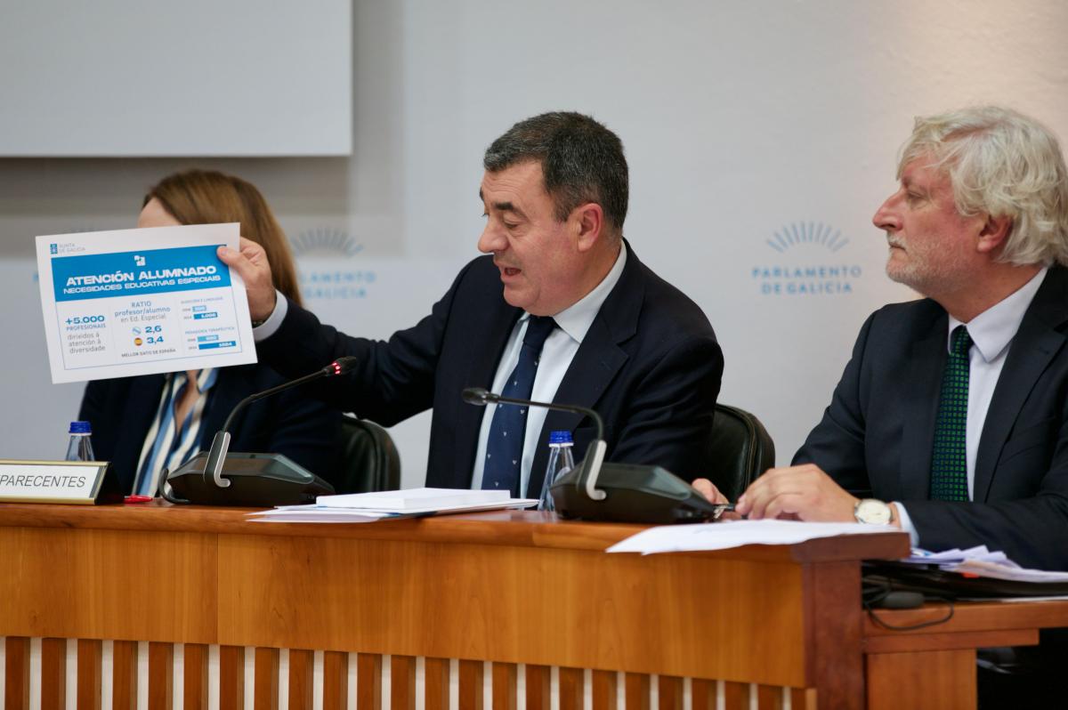 El conselleiro de Educación, Ciencia, Universidades e FP comparece en la Comisión 3ª del Parlamento para explicar los presupuestos de su departamento para el próximo año