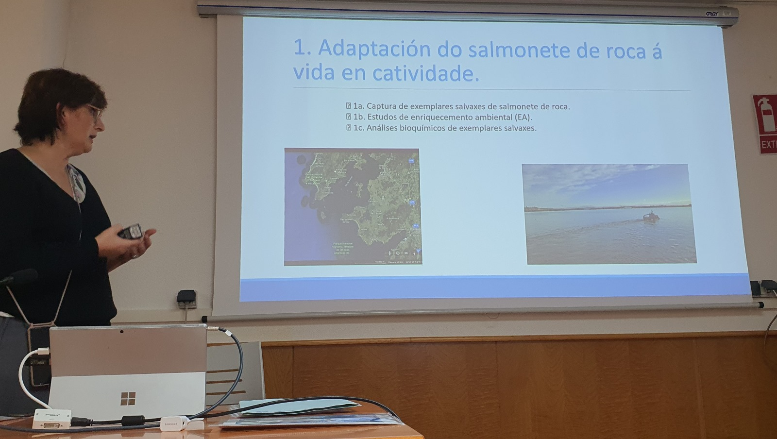 En el encuentro, el orador del CIMA, Bernardo Fernández, y la del CETGA, María Vázquez, hablaron de los avances alcanzados hasta la fecha en los sistemas de captura de ejemplares salvajes, en los procesos de adaptación a la cautividad y domesticación mediante la aplicación de diferentes técnicas de Enriquecimiento Ambiental (EA) así como de los primeros resultados sobre alimentación y nutrición -elaboración de varias dietas húmedas, diversos piensos semihúmedos y primeras pruebas de adaptación a pienso seco-, reproducción -identificación de estados de maduración gonadal- y estado sanitario -identificación de parásitos y patógenos de individuos salvajes y cultivados-.