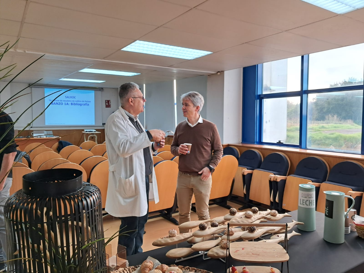 Los oradores del CSIC, Jorge Hernández, Rubén Chamorro e Ignacio Fernández, detallaron en sus intervenciones los estudios que piensan realizar en el futuro, programados para el momento en el que se pueda disponer de larvas de salmonete de roca. Concretamente, en el IIM (Instituto de Investigaciones Marinas de Vigo) se realizarían diversas pruebas de alimentación larvaria en las que se incluiría el suministro de copépodos (Acartia tonsa y Tisbe spp) para intentar optimizar la supervivencia larvaria y en el IGM-León se determinaría la calidad de larvas y alevines mediante la identificación de posibles deformidades esqueléticas utilizando técnicas de coloración diferencial (azul de alcián y rojo de alizarina). Hay que destacar que los tres investigadores del CSIC que participarán en el proyecto SALROC son antiguos alumnos del IGAFA (Instituto Gallego de Formación en Acuicultura), lo que puede dar una idea de la calidad de la formación en acuicultura que se imparte en este centro educativo dependiente de la Consellería do Mar y en el que también fue profesor durante 25 años el investigador principal del proyecto, Bernardo Fernández.