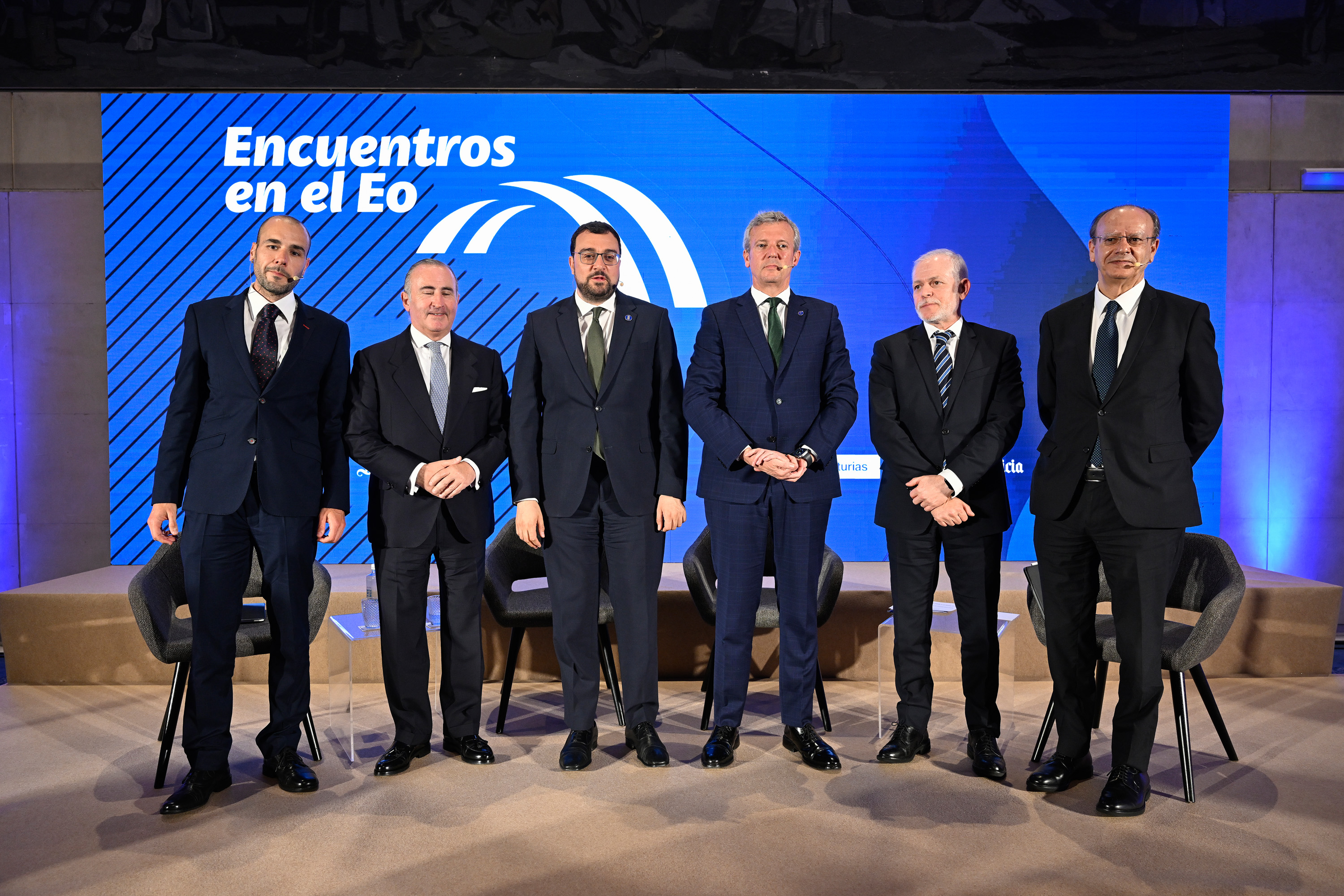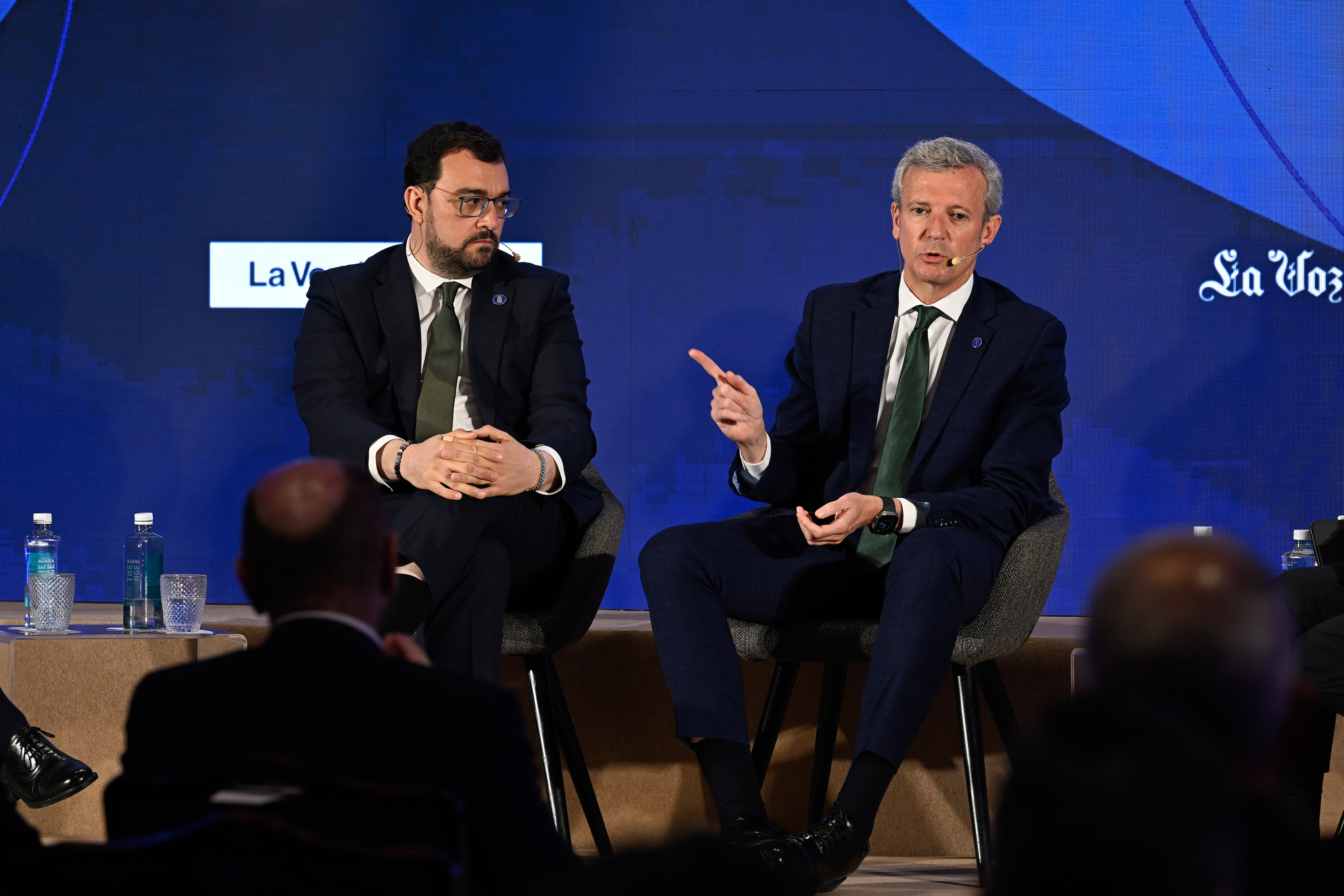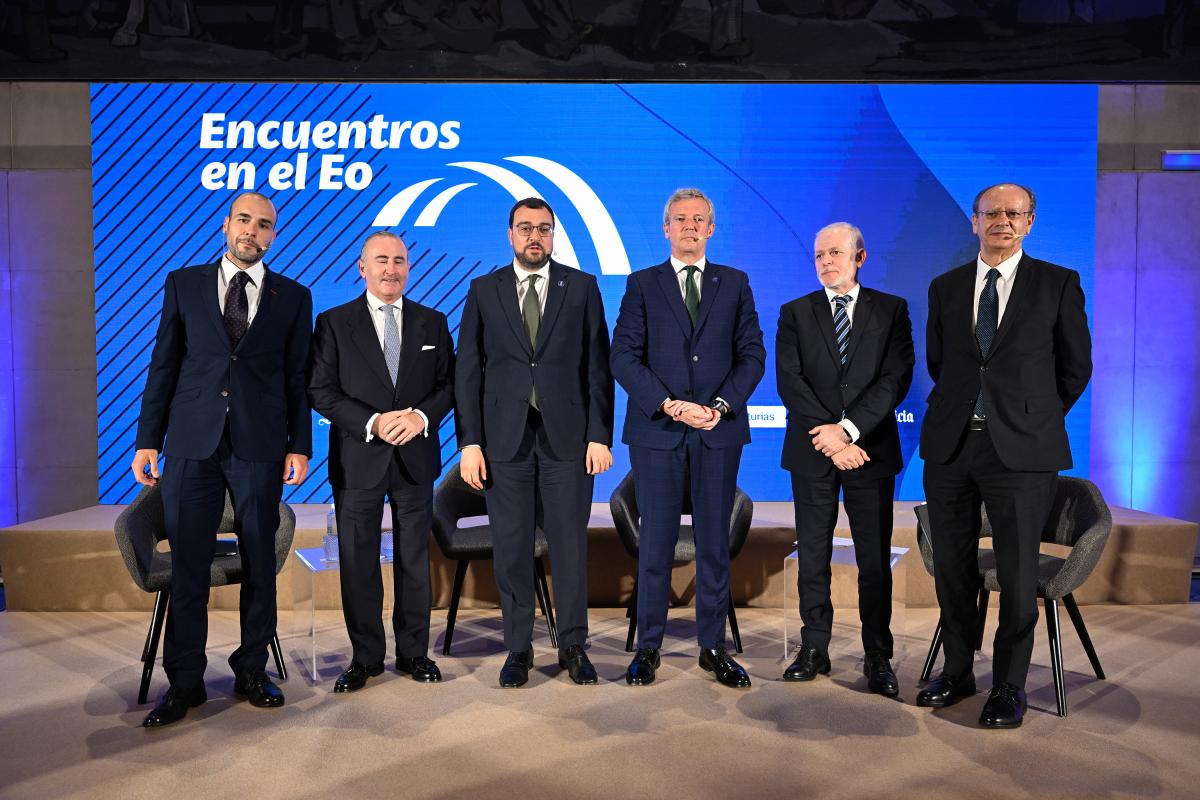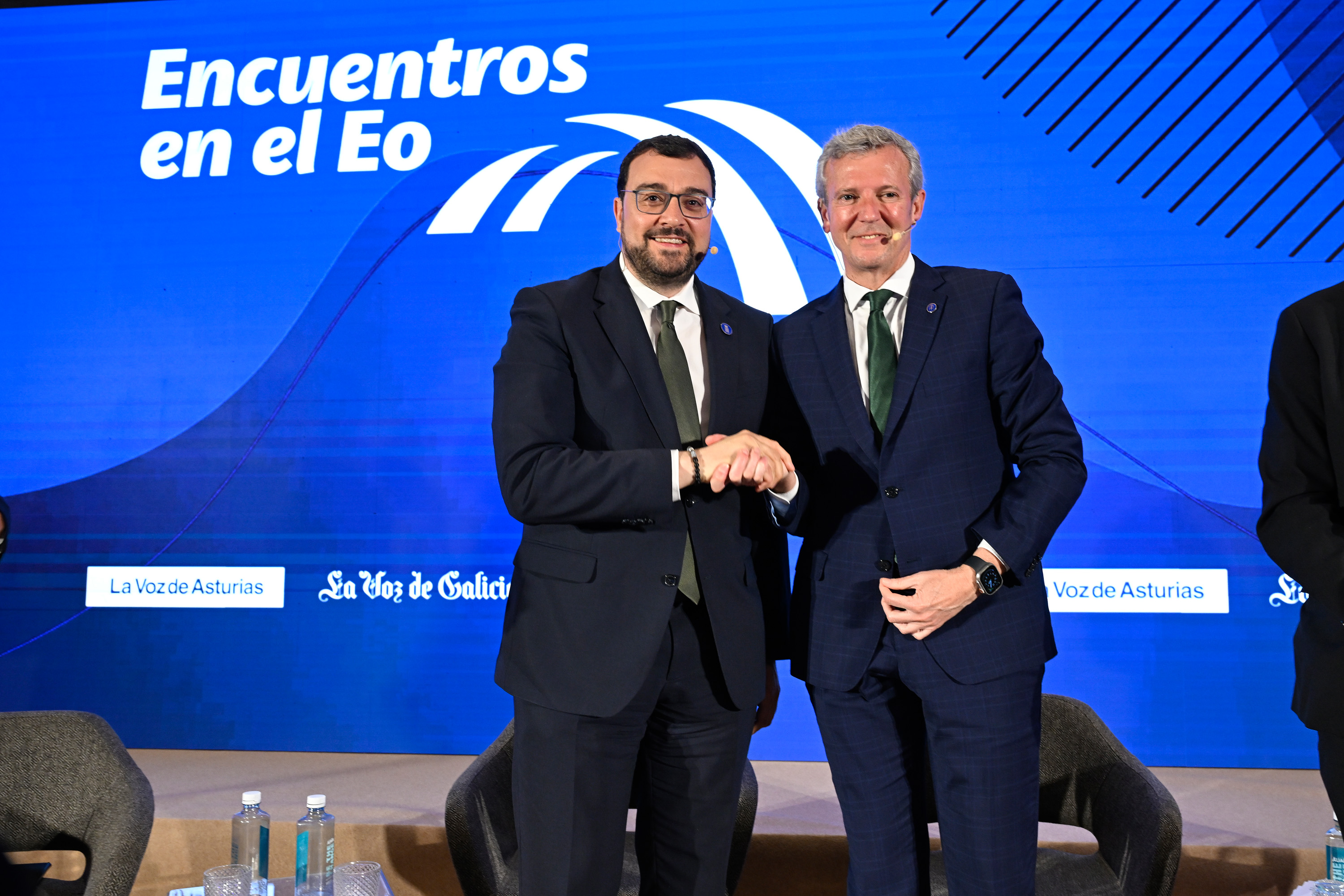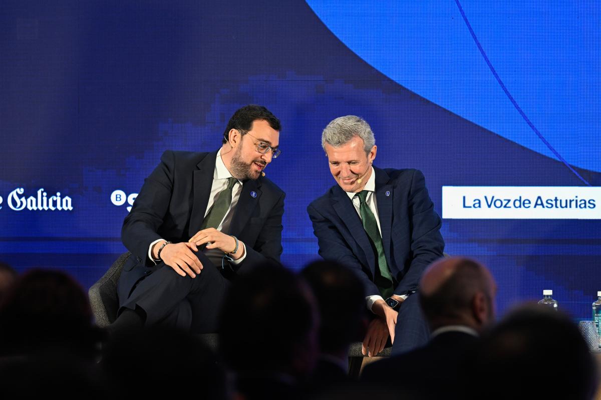 El presidente de la Xunta, Alfonso Rueda, participó hoy en Oviedo en la VII edición de los Encuentros en el Eo, un foro anual centrado en el intercambio de opiniones con su homólogo asturiano, Adrián Barbón. Un encuentro organizado por La Voz de Galicia, La Voz de Asturias y Banco Sabadell.