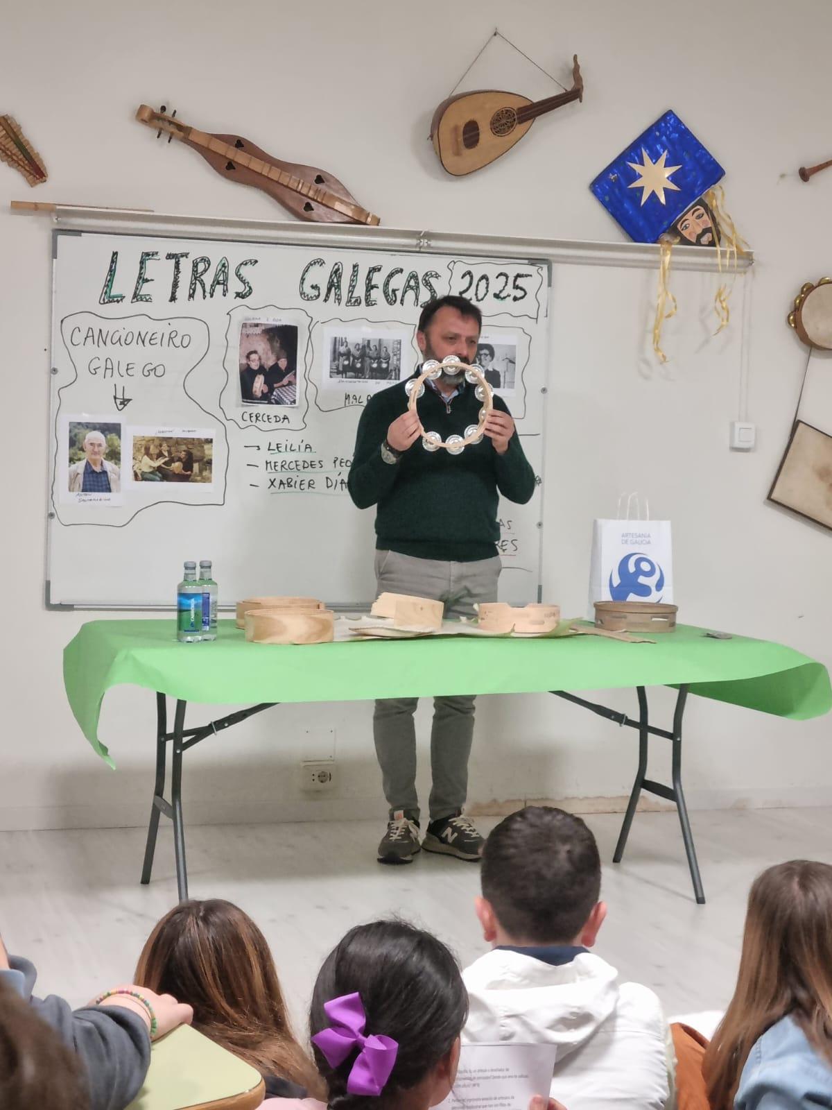 La Xunta continúa con el desarrollo de su programa Artesanía en la escuela, dirigido a acercarle los oficios artesanales y los valores de la artesanía a los niños y niñas de colegios de toda Galicia. La gerente de la Fundación Artesanía de Galicia, Elena Fabeiro, se acercó esta mañana hasta el CEIP Plurilingüe de Silleda, para asistir a la demostración del artesano Xosé Manuel Sanín, que protagoniza la segunda de las unidades didácticas, Yo soy artesano de percusión tradicional.