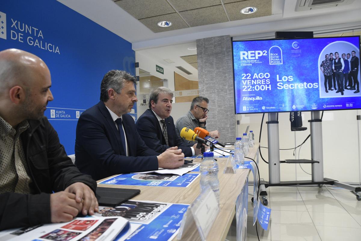 El delegado territorial de la Xunta en Ourense, Manuel Pardo, participó esta mañana, acompañado del director del área de Cultura e Deporte de la Diputación Provincial, Marcos Vázquez, y del alcalde de Celanova, Antonio Puga, en la presentación de la cuarta edición del Ciclo ‘Rock entre pedra e poesía’ , que se celebrará en el Claustro del monasterio de San Salvador de Celanova el 22 de agosto con el concierto de Los Secretos .