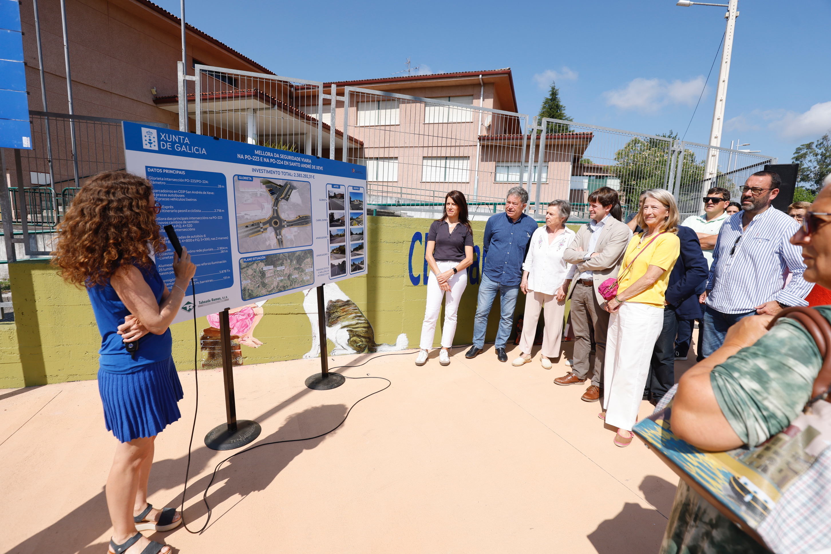 Las actuaciones se llevaron a cabo en este entorno escolar en la que conectan las 2 carreteras autonómicas PO-223 y PO-224 en Santo André de Xeve. En la primera de estas carreteras se habilitó una senda mixta, para el tránsito peatonal y de ciclistas no deportivos, de 2 km de longitud, además de acometer mejoras puntuales en el trazado, en las intersección, en el drenaje y en las paradas de autobús.