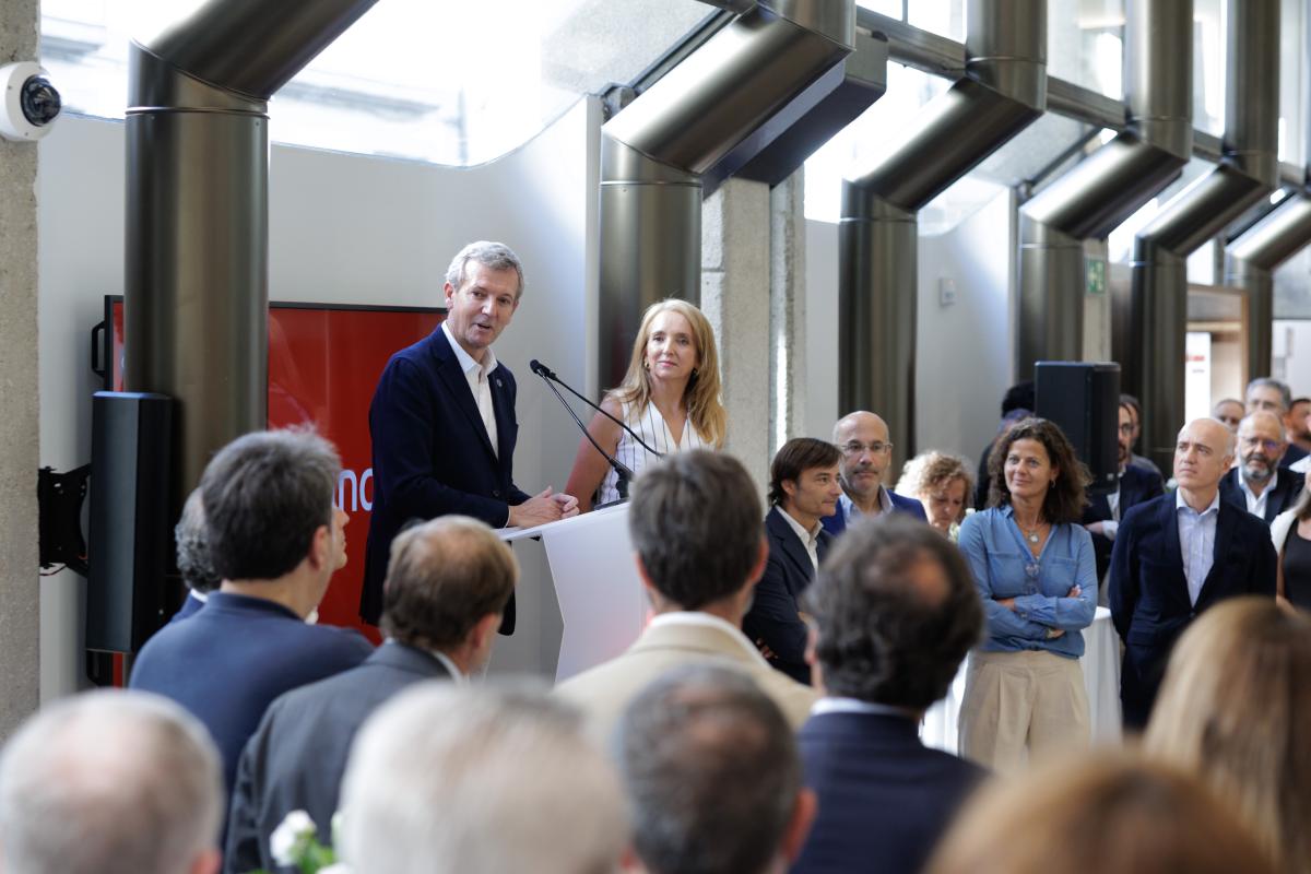 El presidente de la Xunta, Alfonso Rueda, participó este martes en la inauguración del edificio rehabilitado del Banco Santander en Santiago de Compostela, un inmueble emblemático que, segundo destacó, vuelve a abrir sus puertas convertido en un espacio al servicio de la ciudad, de los clientes y de la innovación.