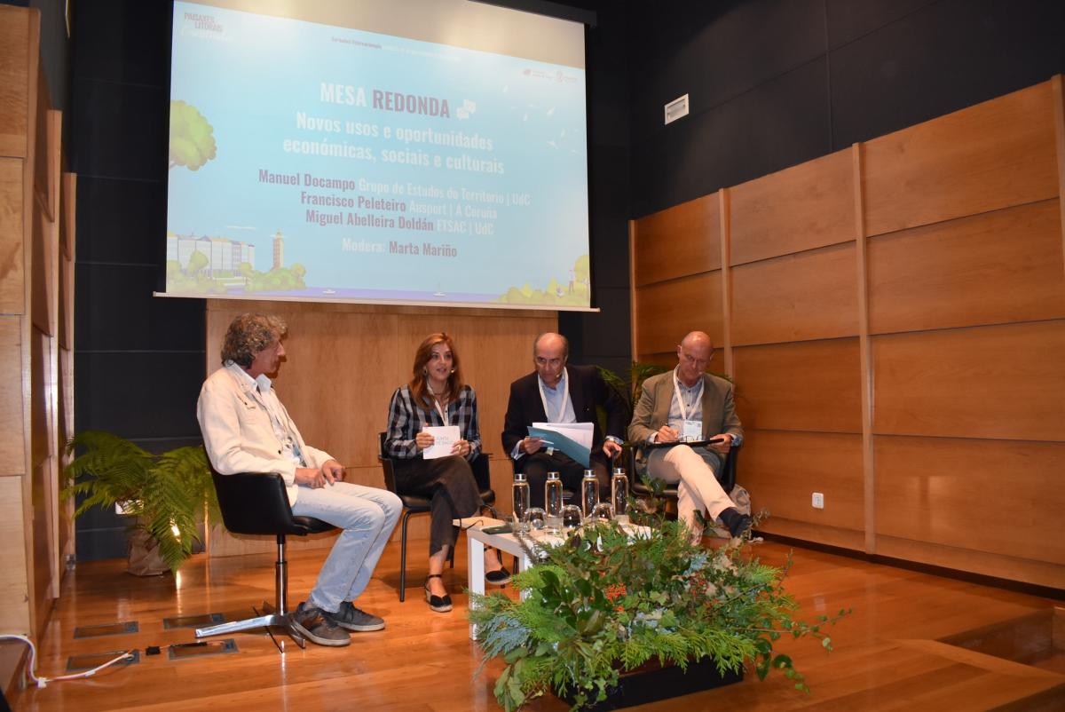 La mesa moderada por Marta Mariño forma parte de la sesión Nuevos usos y oportunidades económicas, sociales y culturales, y en ella participaron representantes del Grupo de Estudios Territoriales (GET) de la Universidade da Coruña, de la Asociación de Usuarios del Puerto de A Coruña (Ausport), de la Escola Técnica Superior de Arquitectura de la Universidade da Coruña y del Concello da Coruña.