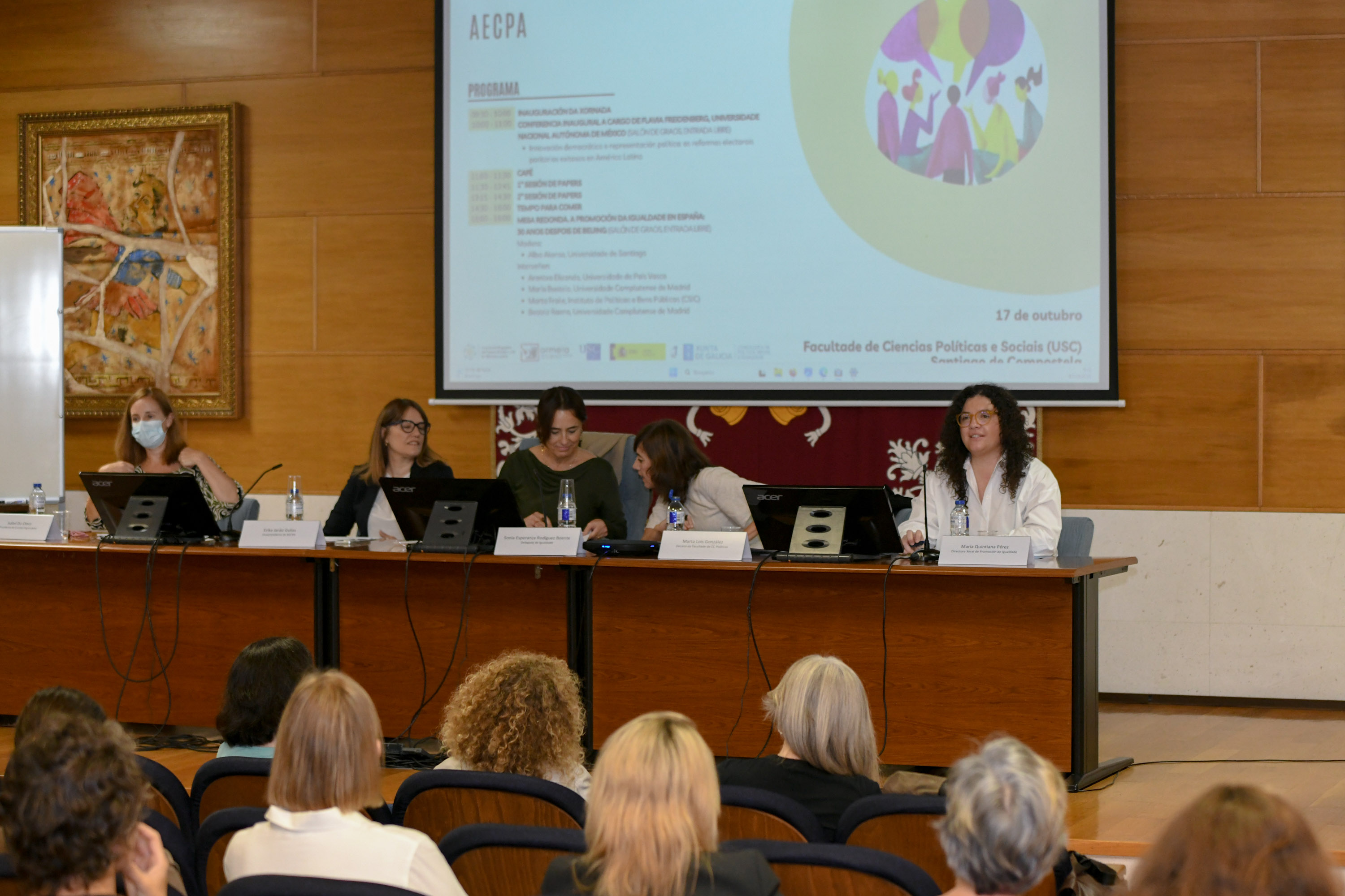 La directora general de Promoción de la Igualdad, María Quintiana, participó esta mañana en la 2ª sesión del grupo permanente de trabajo de Política y Género de la Asociación española de Ciencia Política y de la Administración que se celebró en la Universidad de Santiago. En su intervención, destacó el papel transformador de la institución académica como generadora de conocimiento para construir sociedades más igualitarias.