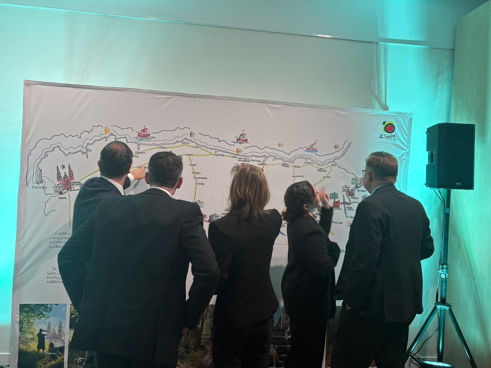 El evento incluyó una muestra de carácter innovador e inmersivo que permitió al público recorrer simbólicamente las etapas del Camino de Santiago a través de estaciones temáticas que incluían desde espacios de información turística de Galicia y Asturias hasta material divulgativo y otros elementos propios de la experiencia jacobea, como el pasaporte del Camino y las conchas de vieira representativas del mismo. También se proyectaron varios vídeos que ponen en valor los distintos y variados recursos turísticos de ambas comunidades. Además, el público pudo conocer la calidad de la gastronomía del Camino con muestras de productos típicos de las dos regiones.