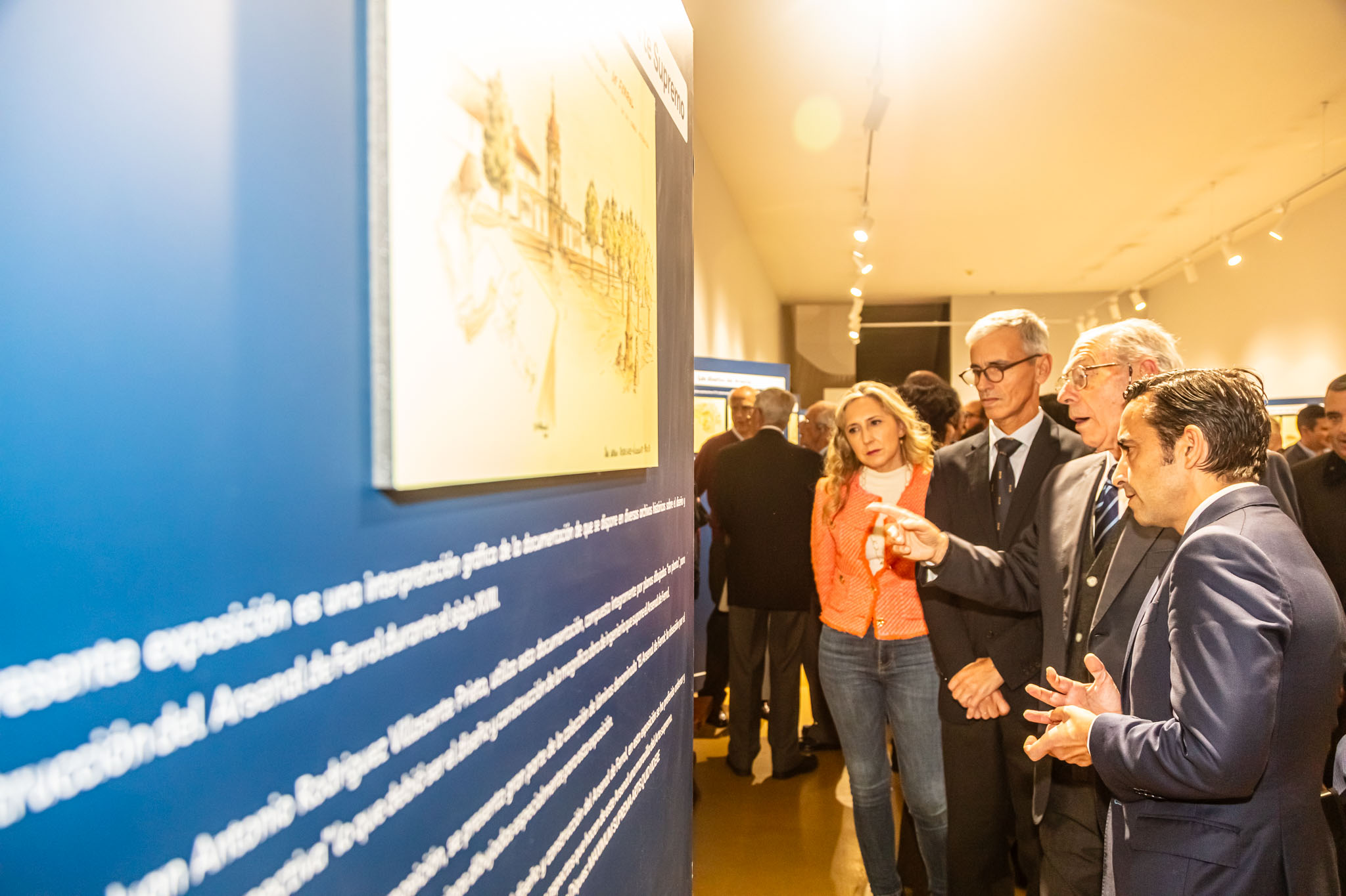 La delegada territorial de la Xunta en Ferrol, Martina Aneiros, asistió esta tarde en el centro cultural Torrente Ballester a la inauguración de la exposición El Arsenal Militar. La obsesión por el orden académico, una muestra de ilustraciones compuesta por 18 paneles y casi 80 dibujos del autor Juan Antonio Rodríguez Villasante Prieto, con la que se conmemoran los 250 años de la construcción del Arsenal. El acto contó también con la presencia del alcalde de la ciudad, José Manuel Rey Varela, el almirante del Arsenal, Vicente Rubio Bolívar, y el comisario de la exposición, Santiago García, entre otras autoridades.