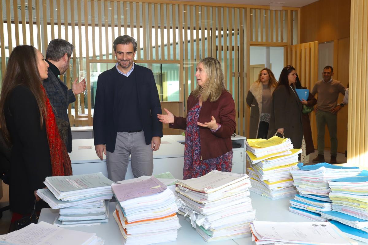 El conselleiro de Presidencia, Xustiza e Deportes, Diego Calvo, comprobó cómo se está llevando a cabo el traslado del personal del antiguo juzgado número 1 de Primera Instancia e Instrucción y de la oficina de Registro Civil y a la próxima semana se procederá con los profesionales del juzgado número 2