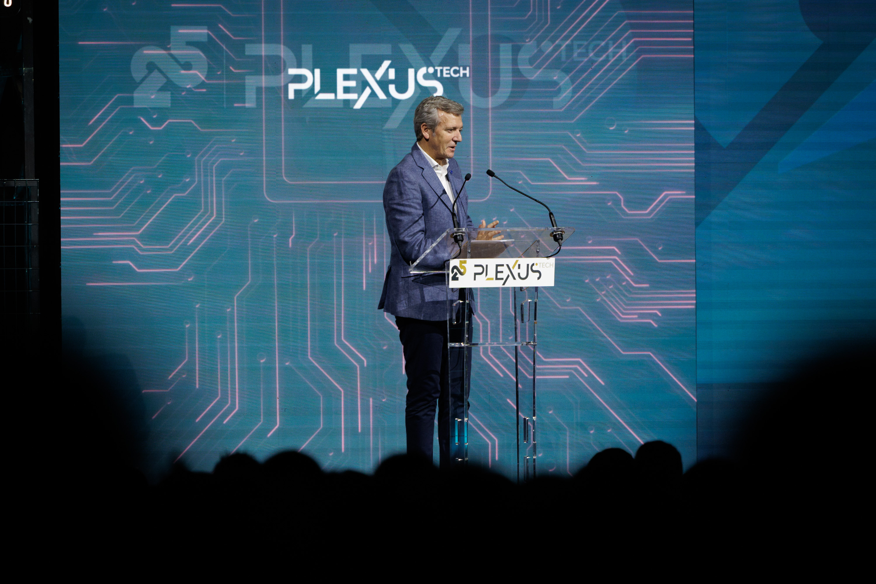 Así lo explicó durante los actos de conmemoración del 25 aniversario de la empresa Plexus Tech, una compañía especializada en servicios y productos de tecnología de la información que se ha consolidado como un referente a nivel nacional e internacional: “Estamos muy agradecidos porque las raíces de Plexus sigan aquí después de crecer tanto. Plexus sigue aquí, siendo una empresa gallega, de Galicia Calidade”, subrayó.