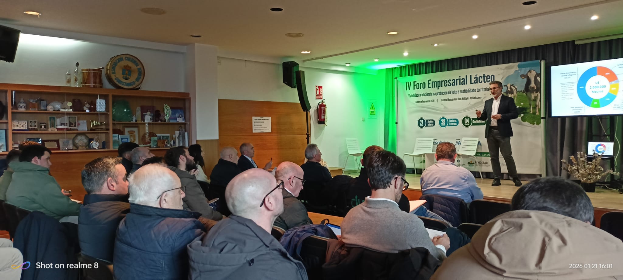 Además, explicó las líneas de apoyo con las que cuenta su dirección general para apoyar al sector agrodanadero en Galicia. Entre ellas, destacó las destinadas a planes de mejora en las explotaciones, de las que se benefician principalmente aquellos dedicadas a la actividad ganadera; las de incorporación de jóvenes, en las que destacan beneficiarios ligados a granjas de vacuno de leche; o las de transformación y comercialización de productos agrarios, de las cuales aproximadamente el 40 % de las ayudas se destinan a industrias del sector lácteo.