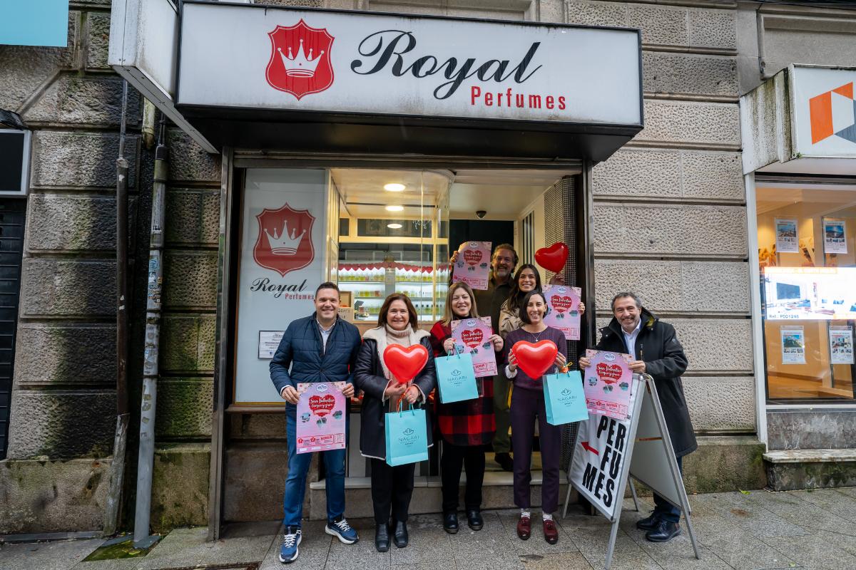 La delegada territorial de la Xunta en Vigo, Ana Ortiz, presentó este lunes a campaña de San Valentín de la mano del Centro Comercial Abierto Zona Náutico, representado por su presidente, César Ballesteros. En ek acto, celebrado en el establecimiento Royal Perfumes, en la calle Marqués de Valladares, la representante autonómica destacó el apoyo del Gobierno gallego al comercio local para fomentar el consumo en los establecimientos de proximidad.
