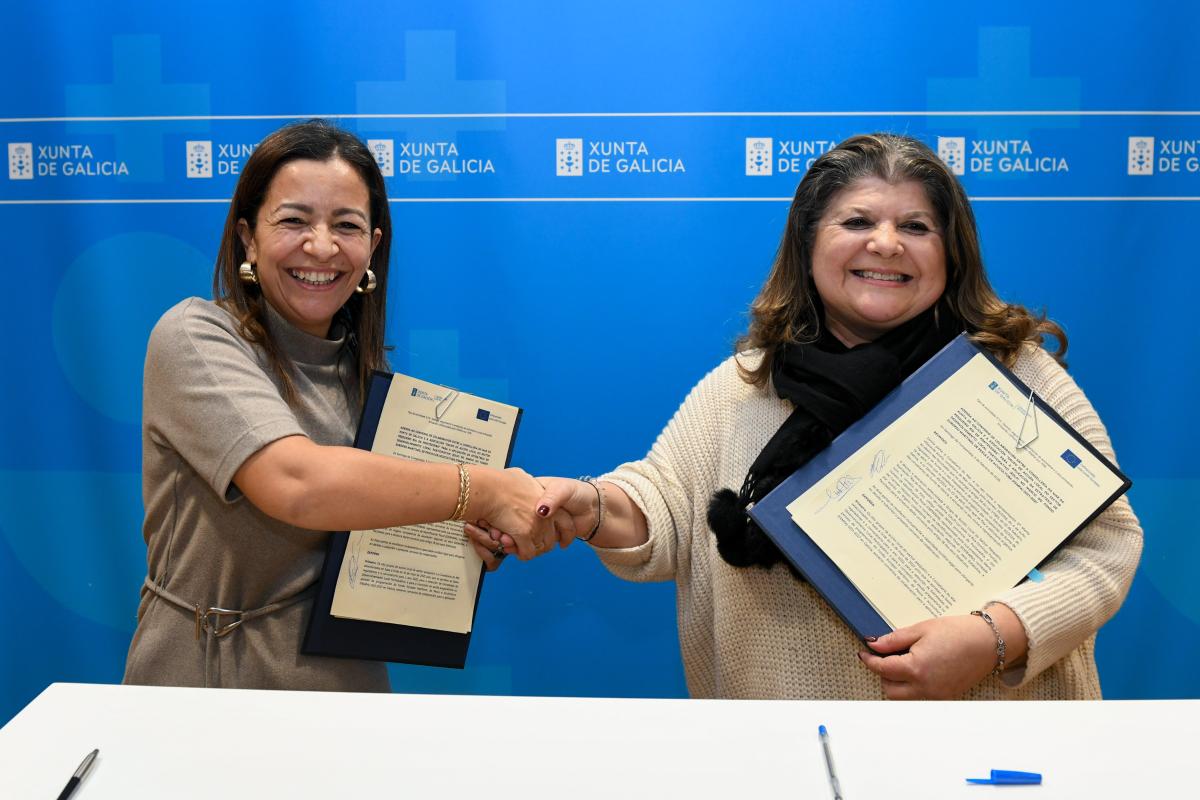 La conselleira do Mar, Marta Villaverde, acompañada de la directora general de Desarrollo Pesquero, Ángeles V. Suárez, firmó este jueves las adendas a los convenios de colaboración con los Grupos de Acción Local del Sector Pesquero (GALP) que permitirá extender la financiación al funcionamiento de estas entidades hasta el 2029.