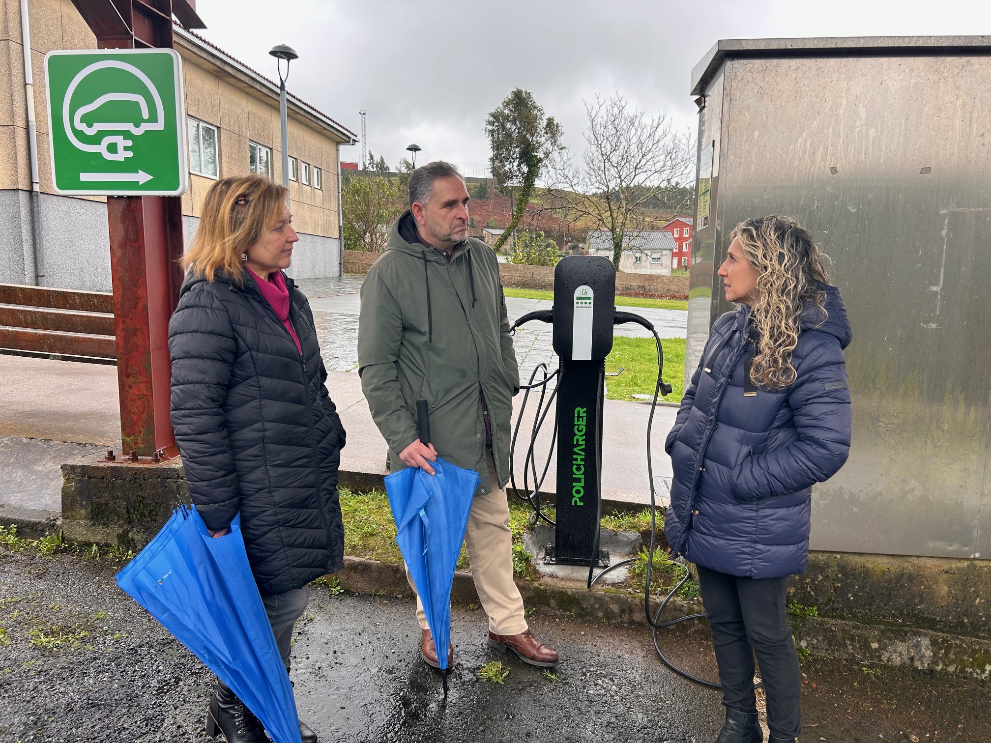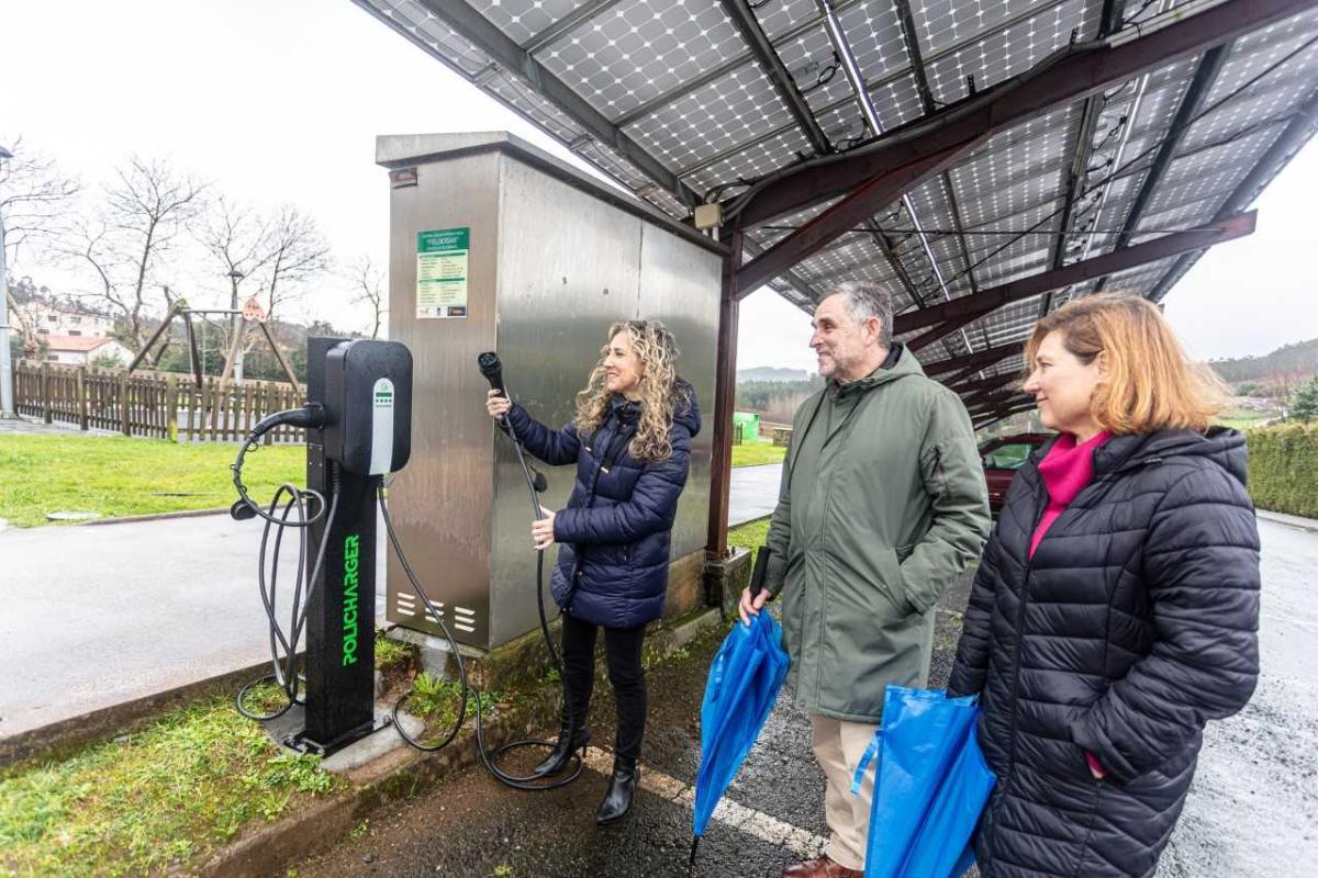La delegada territorial de la Xunta en Ferrol, Martina Aneiros, acompañada del alcalde de Cerdido, Alberto Rey, visitó esta mañana la instalación de un punto de recarga público y de paneles solares con cargo a una ayuda de más de 11.000 euros de la línea de concurrencia competitiva del Fondo de Compensación Ambiental (FCA).