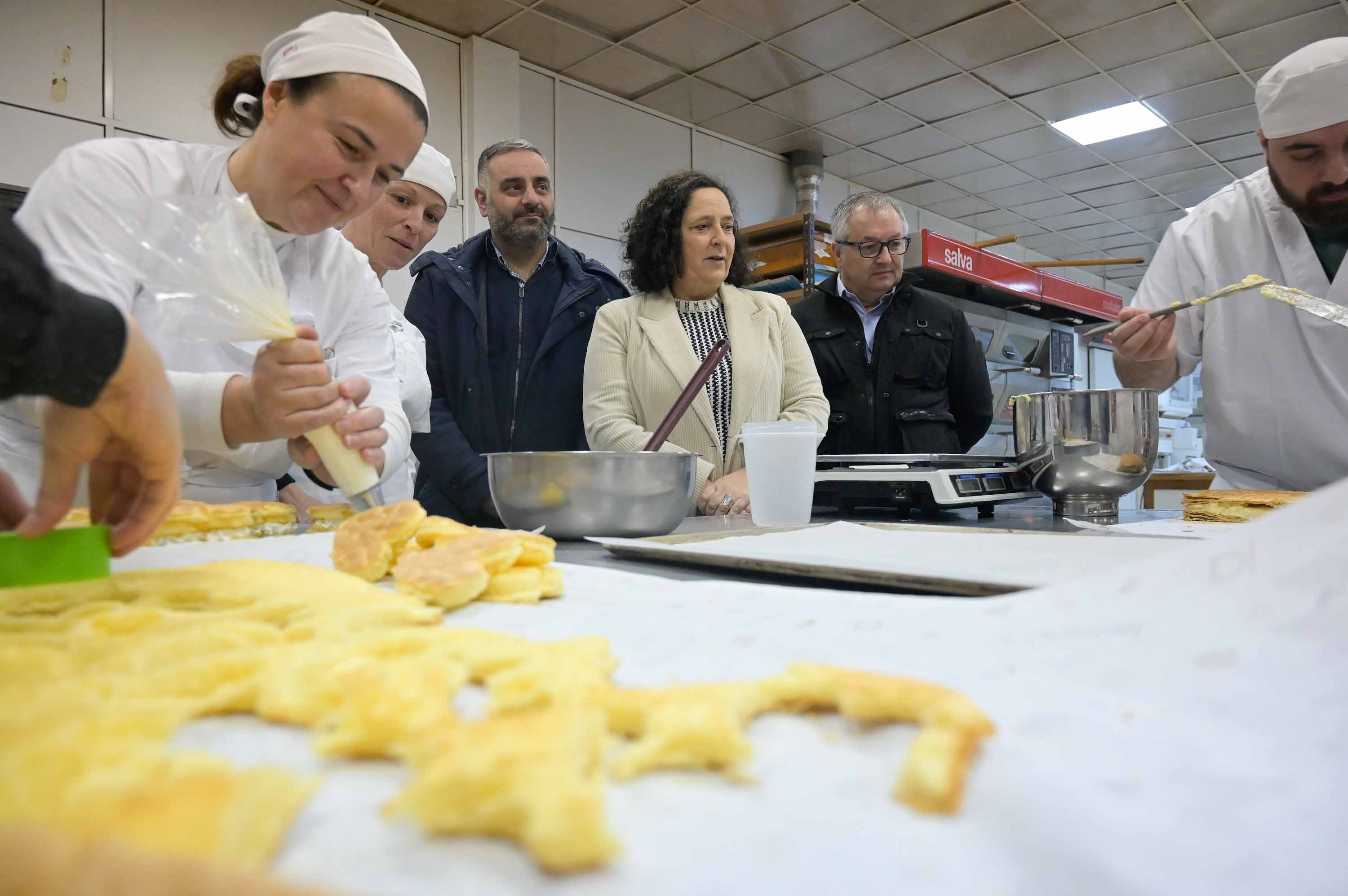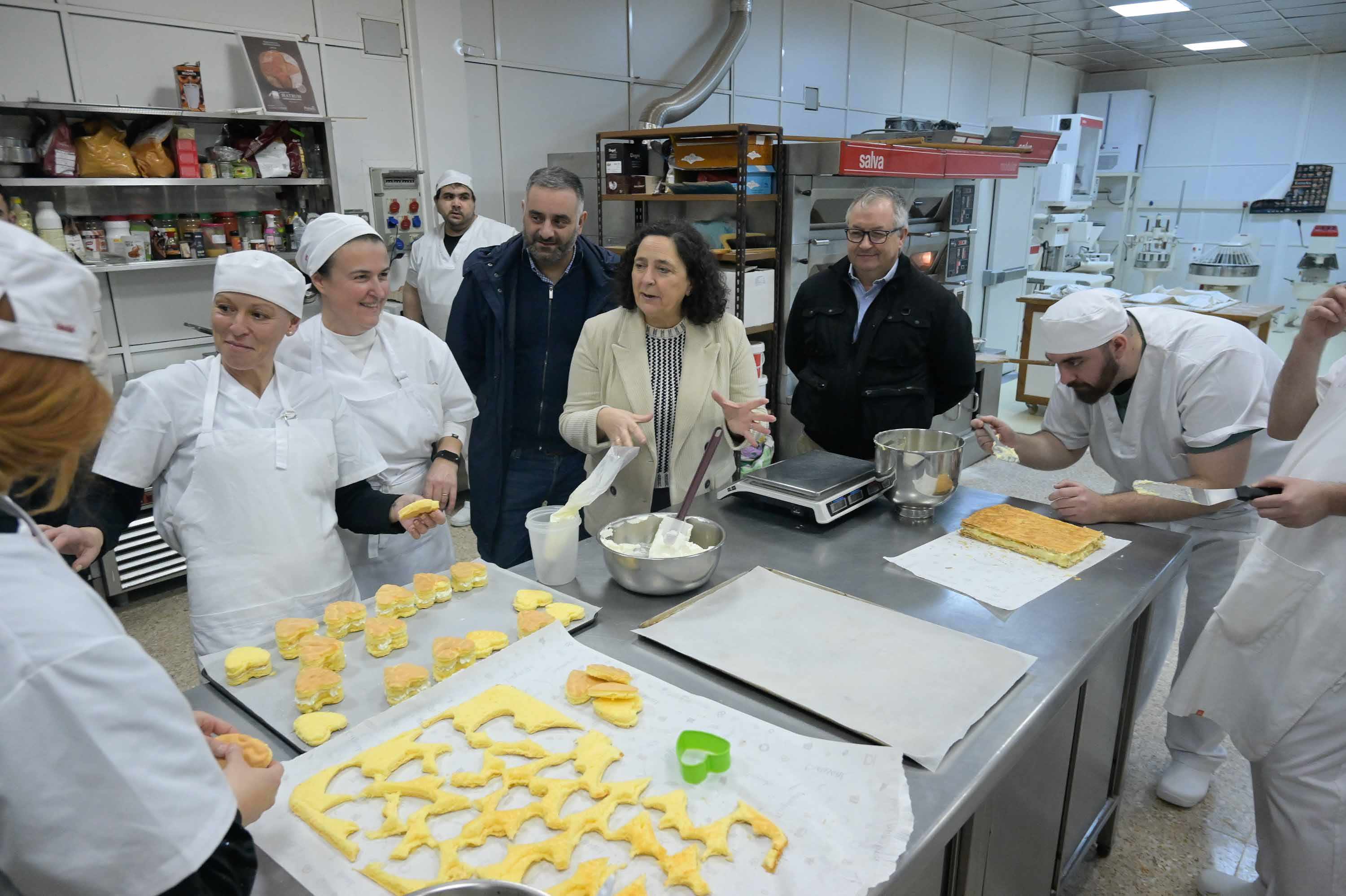 La delegada de la Xunta, Belén do Campo, acompañada por el director territorial de la Consellería de Emprego, Comercio e Emigración, Juan José Couce, y por Marcial Grela, presidente de Aprofar (Asociación Provincial de Forneiros e Artesáns da Coruña), y otros miembros de la junta directiva, visitó las instalaciones de la entidad que imparte una acción formativa para desempleados (AFD) gracias a una aportación de la Xunta de casi 65.000 euros, centrada en Panadería y Bollería.