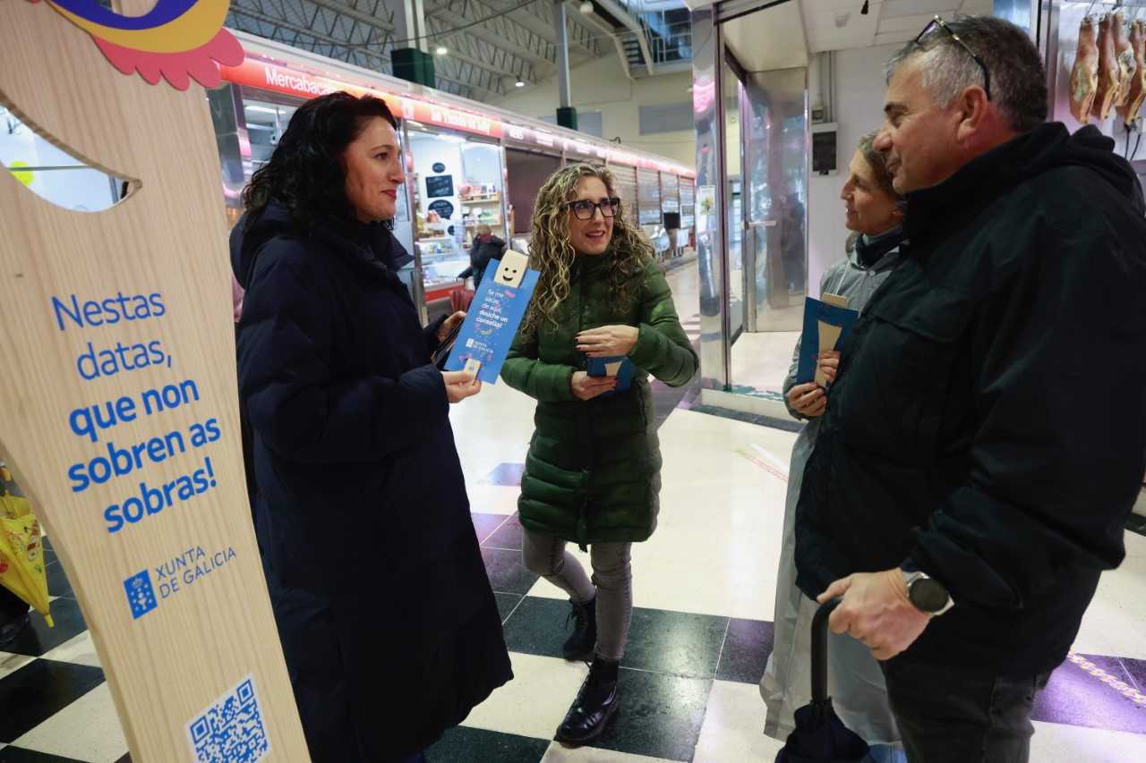 La delegada territorial de la Xunta en Ferrol, Martina Aneiros, visitó esta mañana el mercado de la Magdalena, en Ferrol, en el marco de la campaña de concienciación contra el desperdicio alimentario Nestas datas, que non sobren as sobras!, puesta en marcha por la Consellería de Medio Ambiente e Cambio Climático.