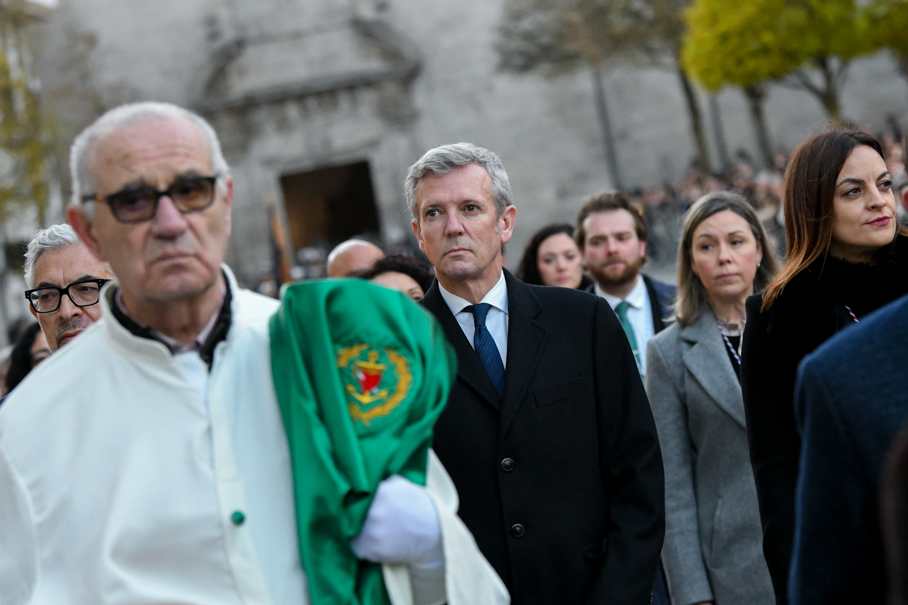 El presidente de la Xunta de Galicia, Alfonso Rueda, asistió esta tarde a la procesión de la Virgen de la Esperanza, en Lugo, que salió desde la iglesia de Santiago A Nova.