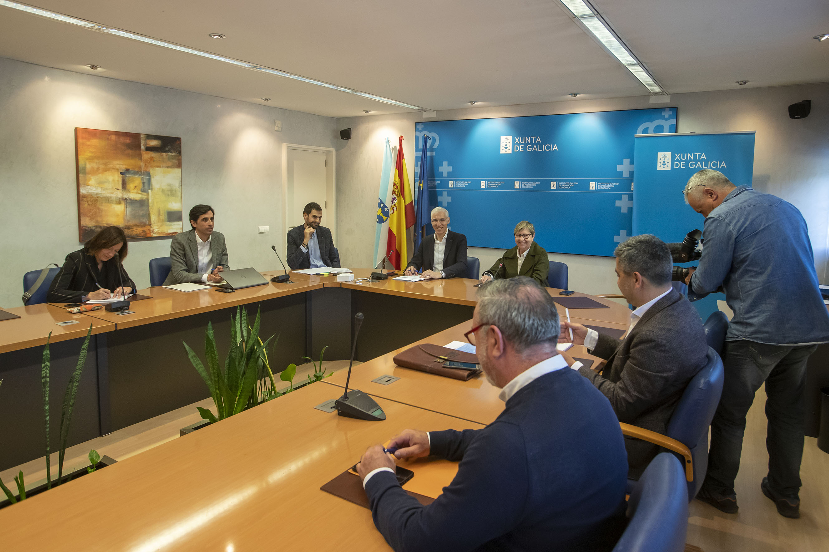 El vicepresidente primero y conselleiro de Economía, Industria e Innovación, Francisco Conde, acompañado por la conselleira do Mar, Rosa Quintana, asistió a la reunión del Observatorio de la eólica marina