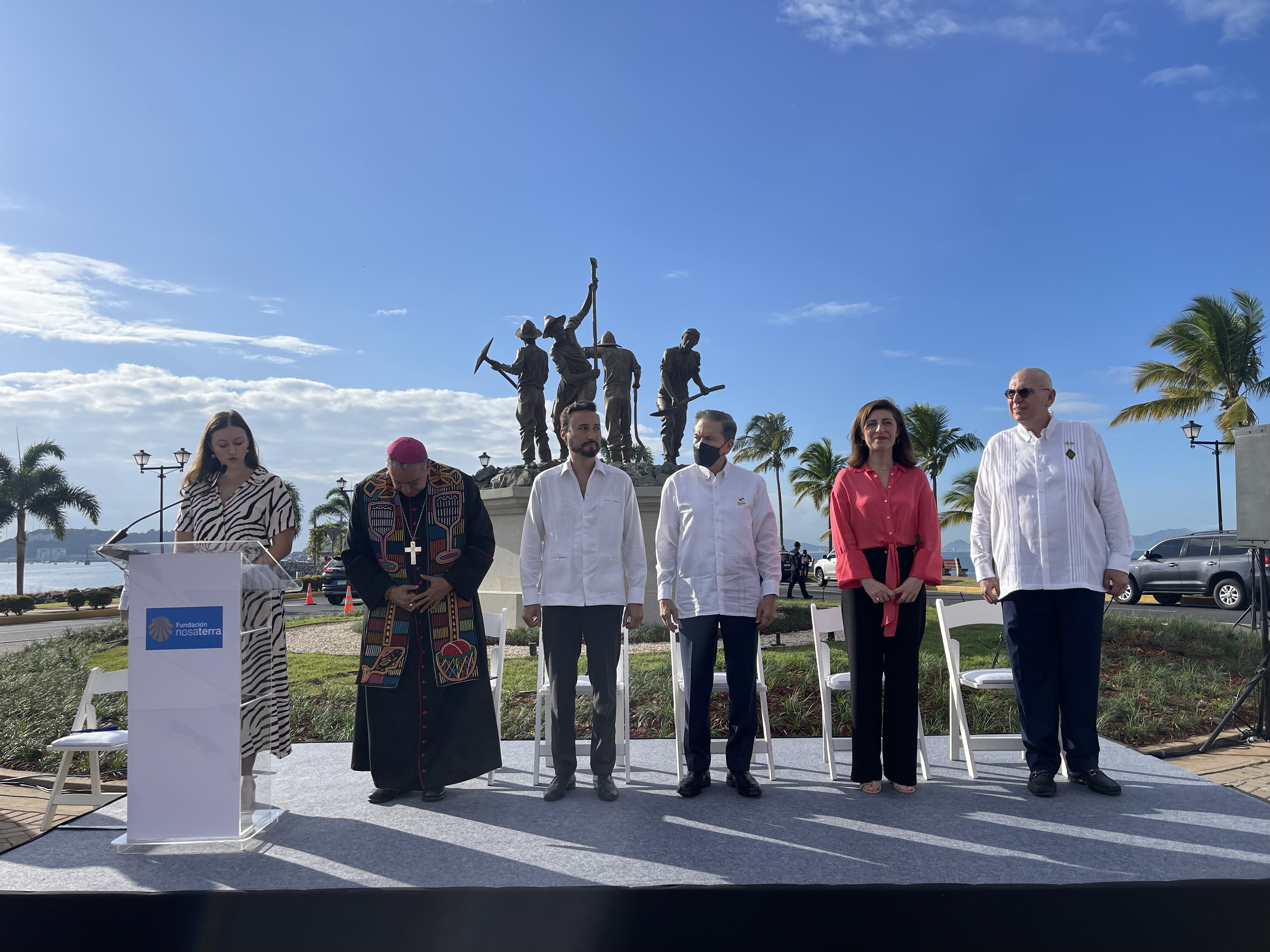 La Fundación Nosa Terra homenajea a los gallegos que participaron en la construcción del Canal de Panamá con la inauguración en Agua Claro, en las esclusas caribeñas de esta infraestructura, de un monumento hecho por el artista Gonzalo Sánchez Mendizábal consistente en cuatro hombres a tamaño real que simbolizan las cuatro provincias gallegas. Los materiales empleados son el bronce y el silicio y el grupo escultórico se asienta sobre una plataforma de bronce que simula la tierra panameña sobre una piedra gallega.
