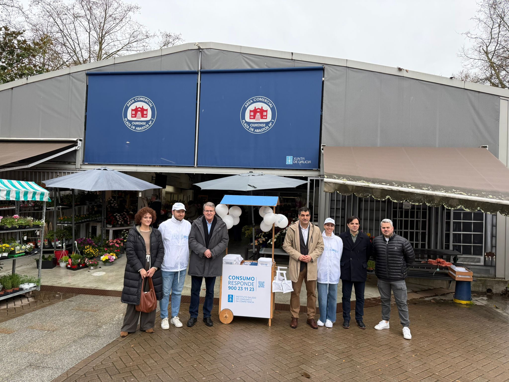 El director general de Comercio y Consumo y el delegado territorial de la Xunta en Ourense visitaron el punto de información al consumidor instalado en el edificio provisional de la plaza de abastos por el Día Mundial de los derechos de las personas consumidoras