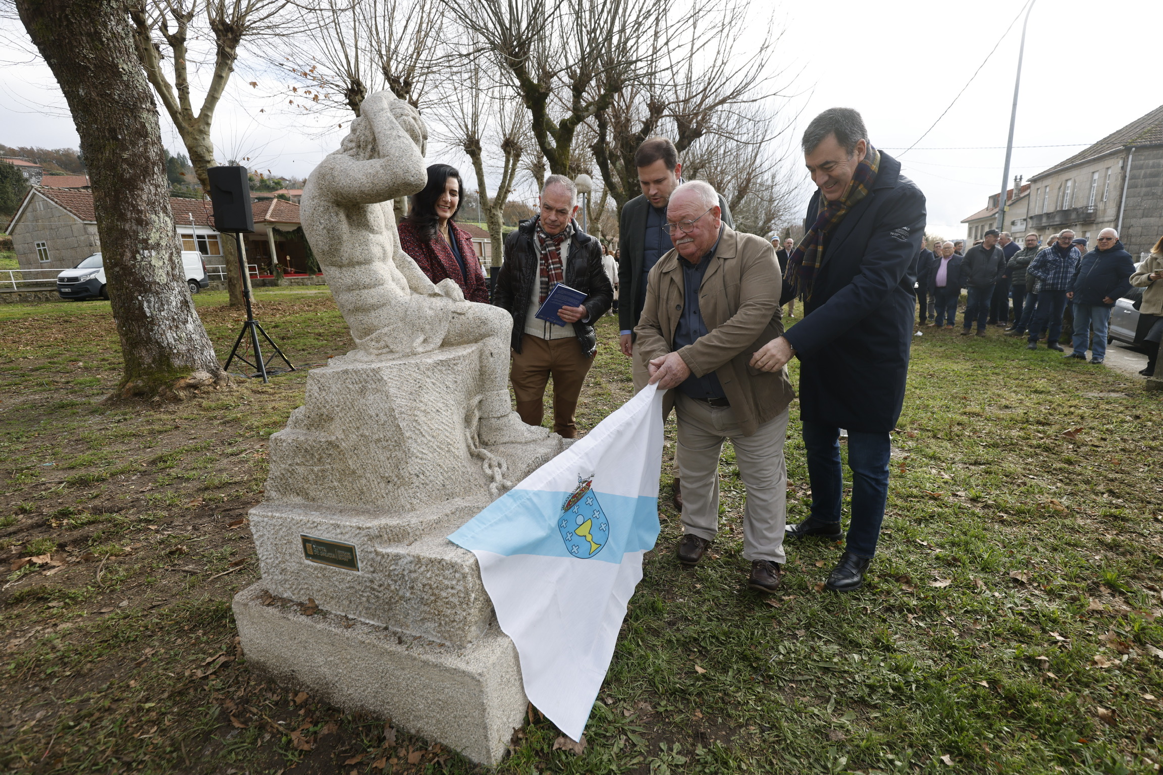 El conselleiro de Educación visita la escultura instalada en la Alameda de Aguasantas, un encargo del ayuntamiento para homenajear a los canteros de la zona