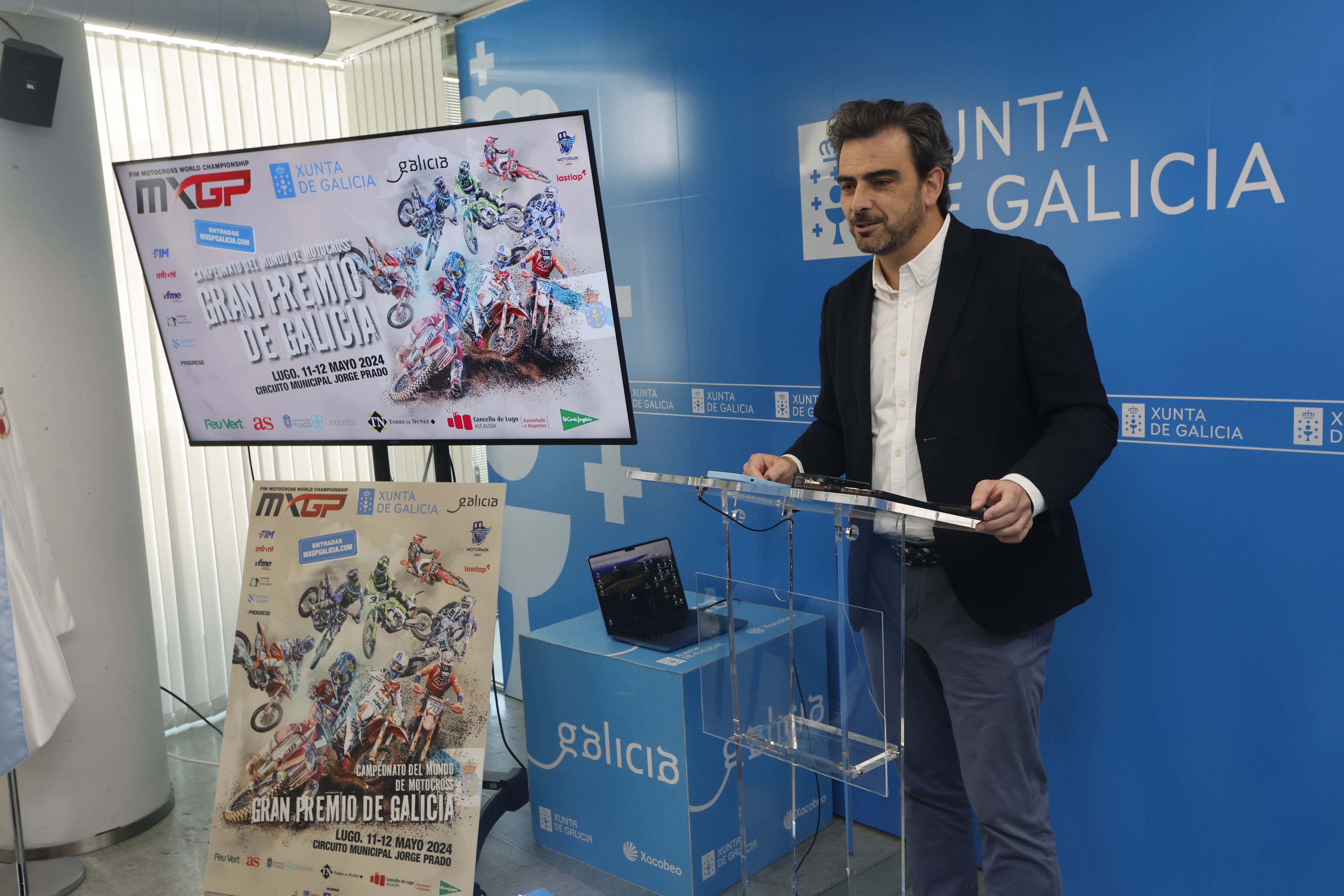 El conselleiro de Presidencia, Justicia y Deportes participó hoy en la presentación del Gran Premio Galicia, correspondiente a la sexta prueba de las categorías MX1, MX2, WMX y la cuarta de la MX125, que se disputará en el circuito municipal Jorge Prado de Lugo