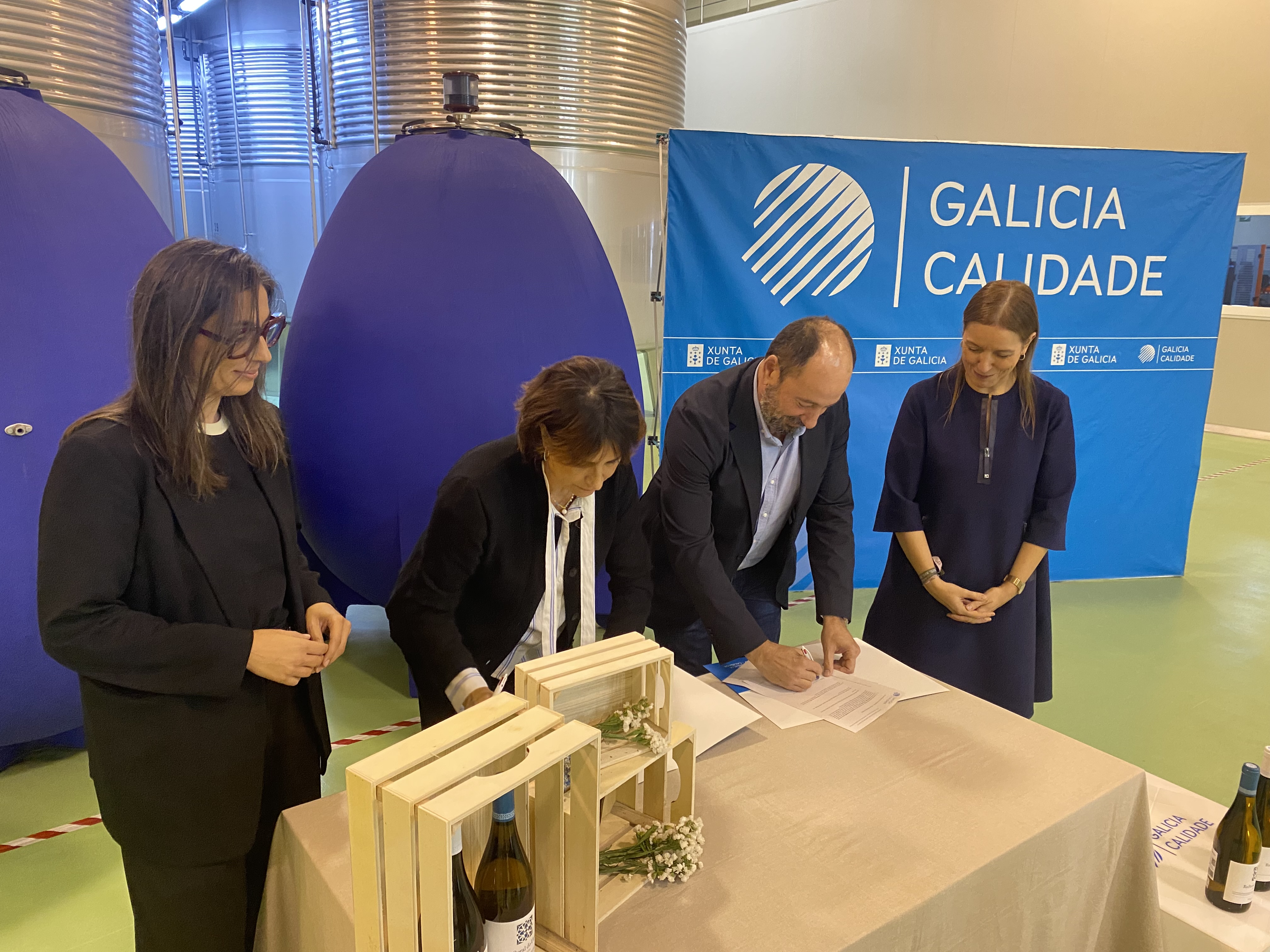 El director de Turismo de Galicia y la gerente de Galicia Calidade hicieron entrega de la certificación a la bodega Rectoral do Umia, que se incorpora a las más de 170 empresas gallegas que cuentan ya con el sello