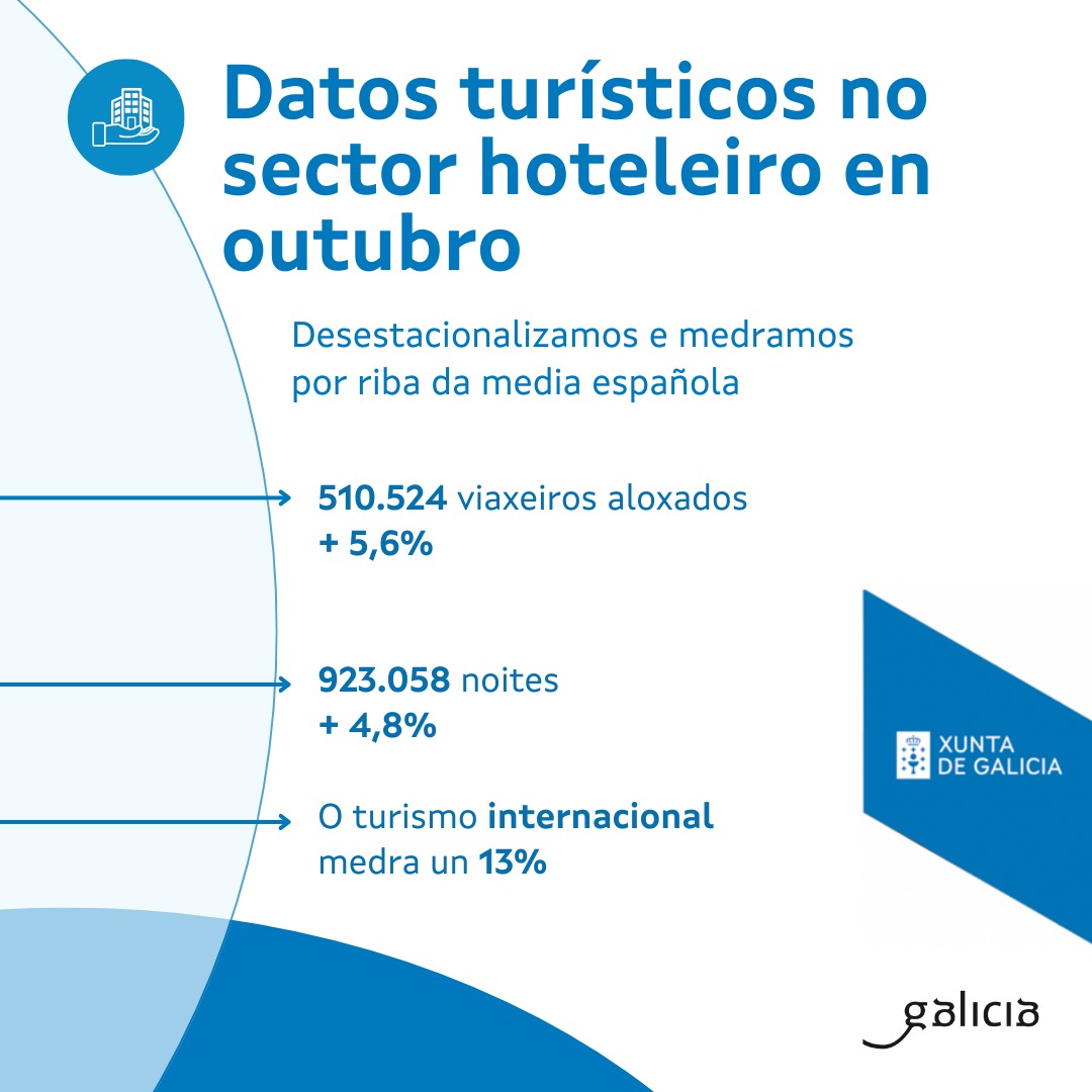 El turismo gallego crece por encima del promedio español en viajeros y noches en el mes de octubre