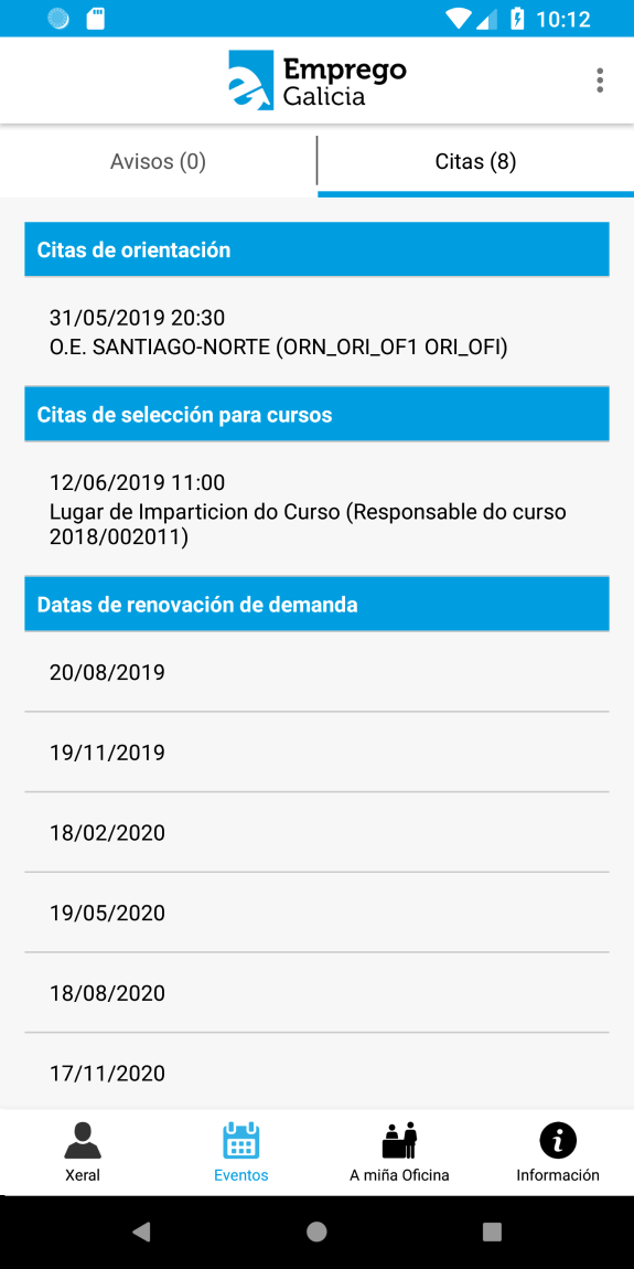 - consultar as citas de orientación laboral;