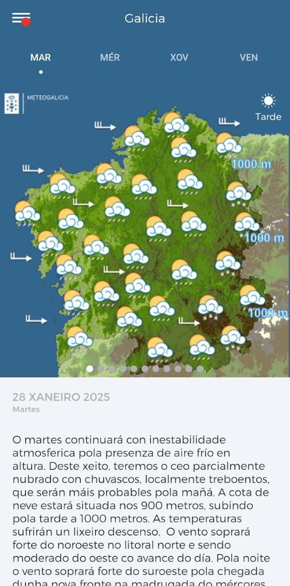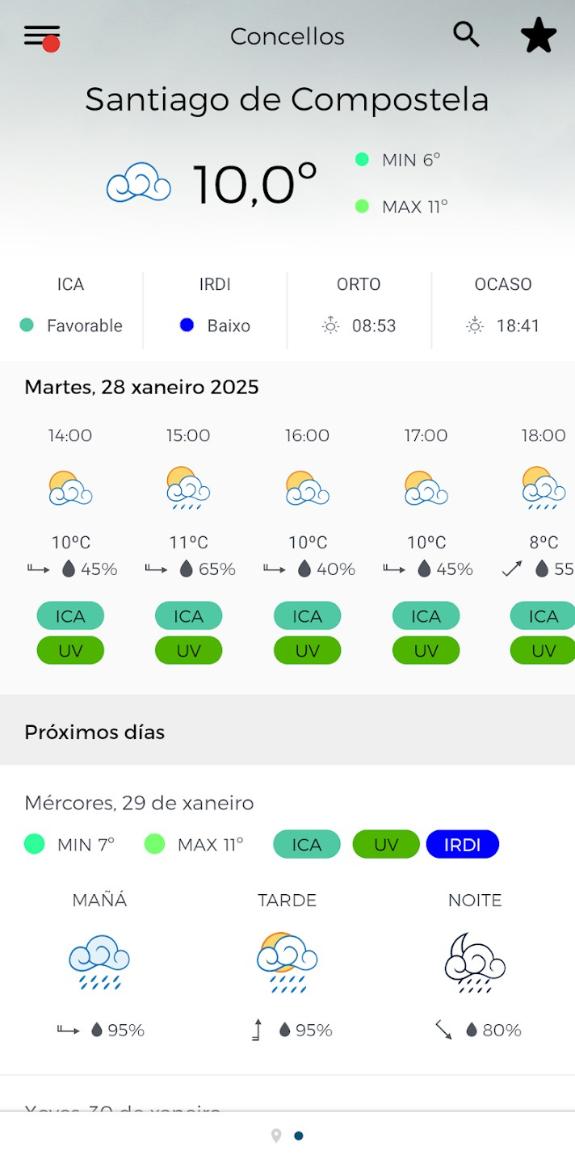 A aplicación oficial de MeteoGalicia ofrece a información meteorolóxica máis completa para a comunidade galega, dunha maneira intuitiva e atractiva.
