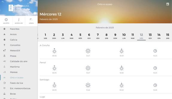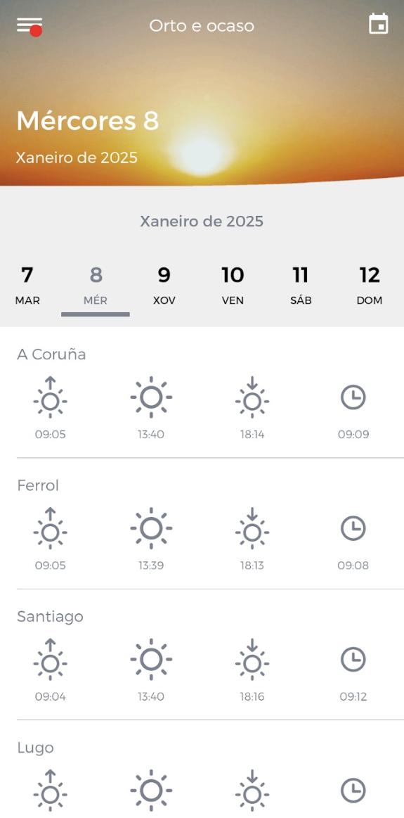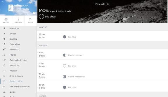 Coa nova app pódese consultar a predición meteorolóxica detallada por concello para os próximos 10 días, o estado do mar, predicións para todas as praias de Galicia, predición xeral e mareas.