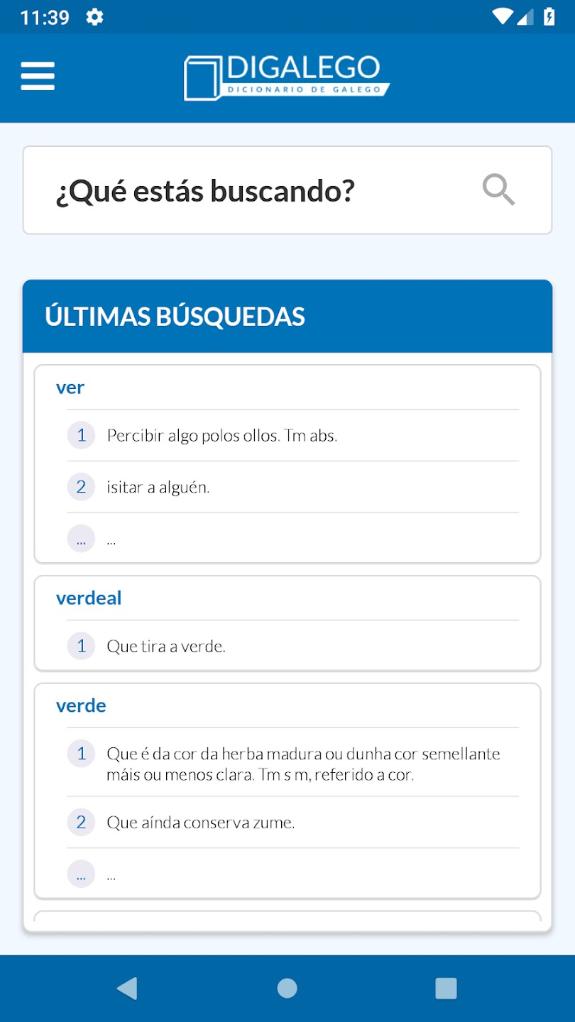 A aplicación de Digalego facilita a procura de termos no dicionario de galego en internet, permitindo acceder á súa definición, recursos multimedia asociados, termos veciños, sinónimos, frases feitas etc.