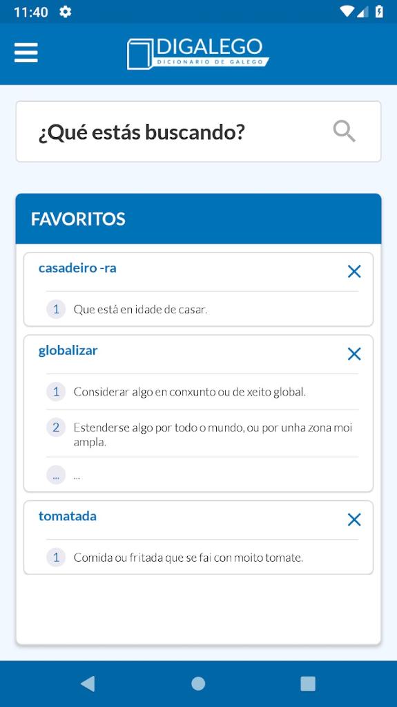 Aplicación que permite a busca de termos no dicionario de galego en internet.