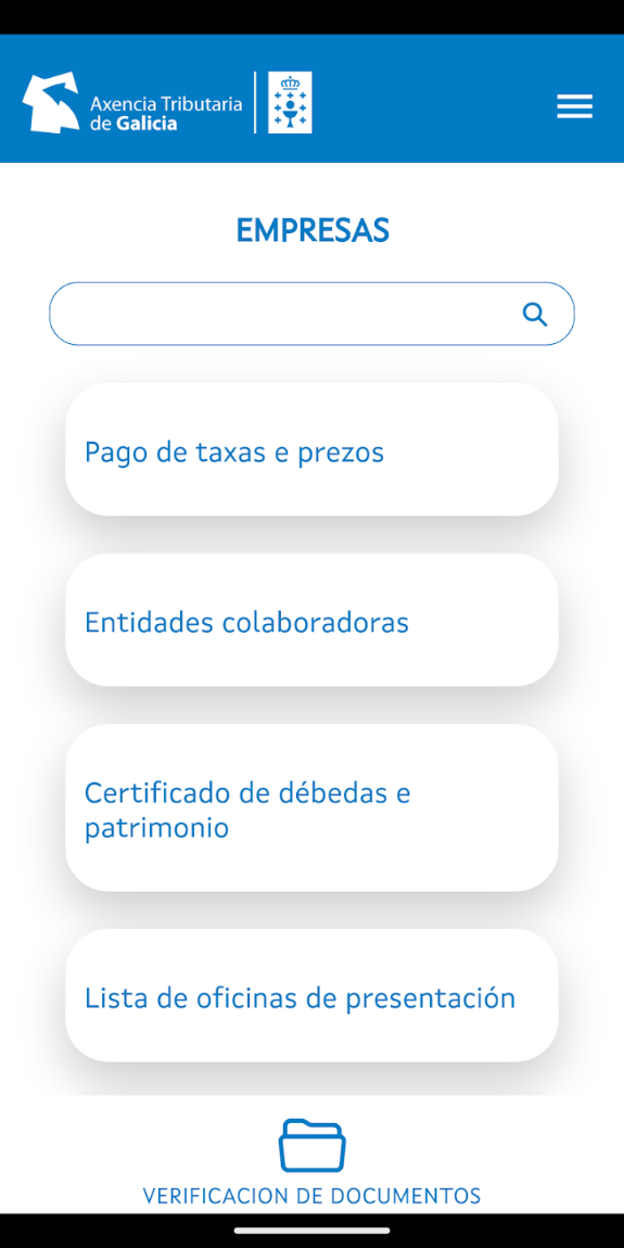 A aplicación móbil da Axencia Tributaria de Galicia ofrece a posibilidade de acceder a diversos servizos, algúns con acceso libre e outros mediante identificación da persoa usuaria.