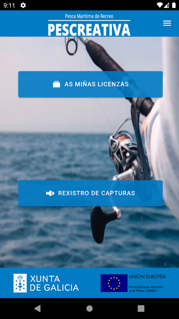 Aplicación móbil que permite a consulta das licenzas de pesca marítima de recreo, así como o rexistro e consulta das capturas asociadas a unha licenza.