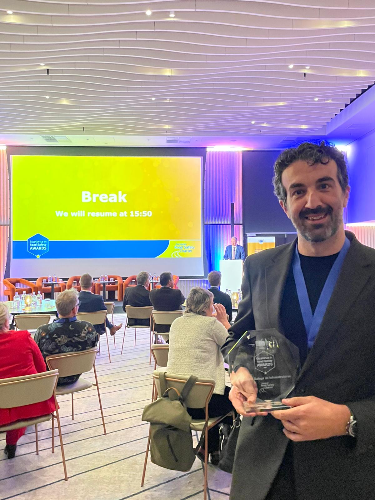 O xefe da área de Planificación, Innovación e Seguridade Viaria da Axencia Galega de Infraestruturas, Héctor Presas Veiga, foi o encargado de recibir hoxe en Bruxelas este galardón na gala dos coñecidos premios Excellence in Road Safety ao traballo desenvolvido pola Xunta no ámbito da seguridade viaria.