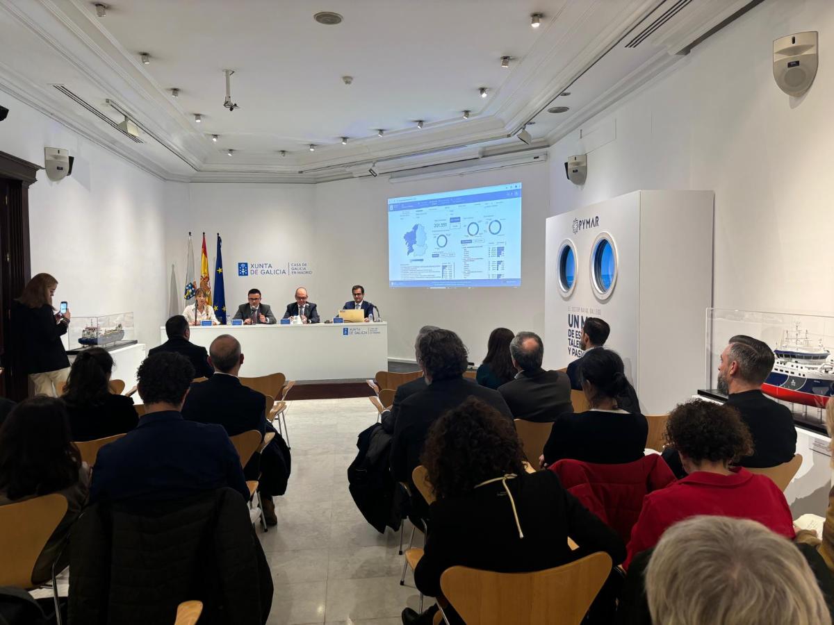 O conselleiro de Emprego, Comercio e Emigración, José González, acompañado pola directora xeral de Formación e Cualificación para o Emprego, Zeltia Lado, e polo director da Casa de Galicia en Madrid, Luis Ramos, avanzou hoxe en Madrid que o Goberno galego desenvolverá no 2025 novas accións que contarán cun investimento de 1 millón de euros para potenciar a ferramenta EMi, que está dispoñible nas 54 oficinas de emprego de Galicia e casa oferta e demanda laboral co apoio da intelixencia artificial.