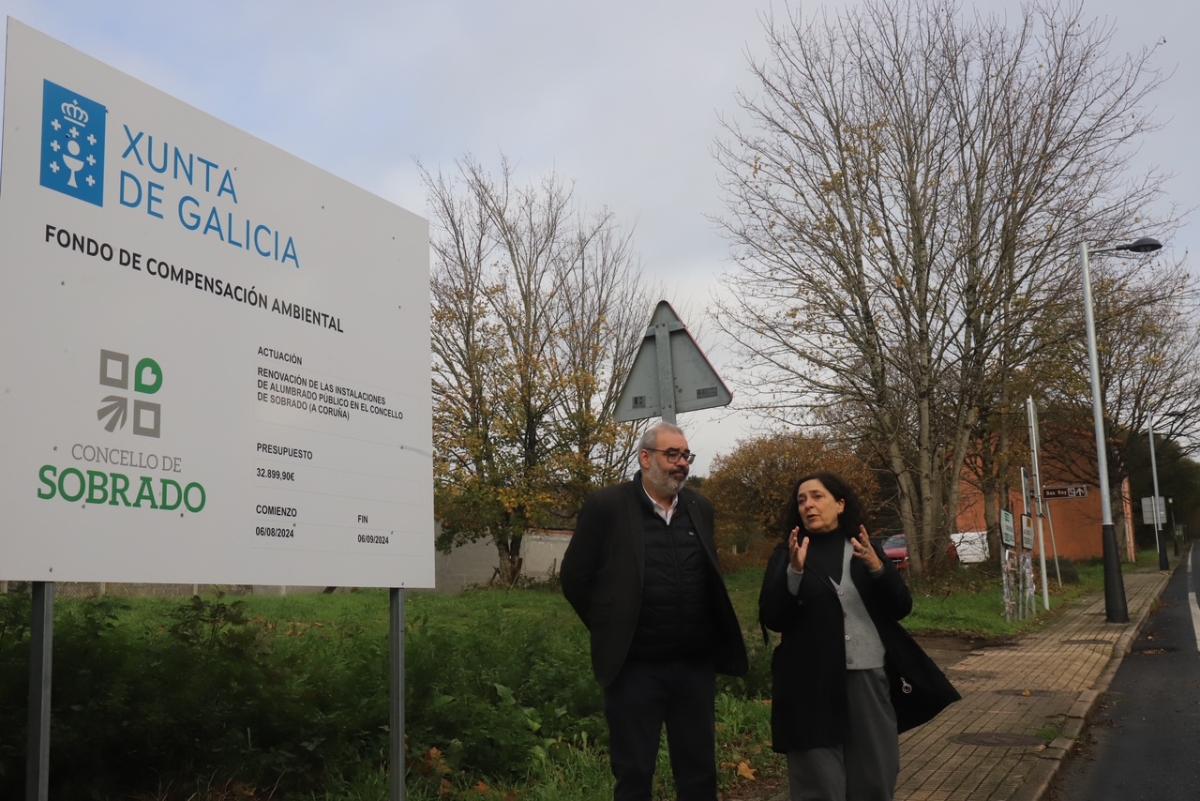 A representante do Goberno autonómico supervisou tamén o resultado das obras de renovación do alumeado público na parroquia de Porta. Unha actuación que contou co apoio do Goberno galego dentro da orde de axudas do Fondo Compensación Ambiental liña non competitiva.Concretamente, Sobrado recibiu unha axuda de case 32.000 euros para levar a cabo a substitución de 12 luminarias do alumeado público de titularidade do Concello no lugar de Porta (casco urbano), saída cara Curtis, co fin de mellorar e incrementar a eficiencia enerxética.