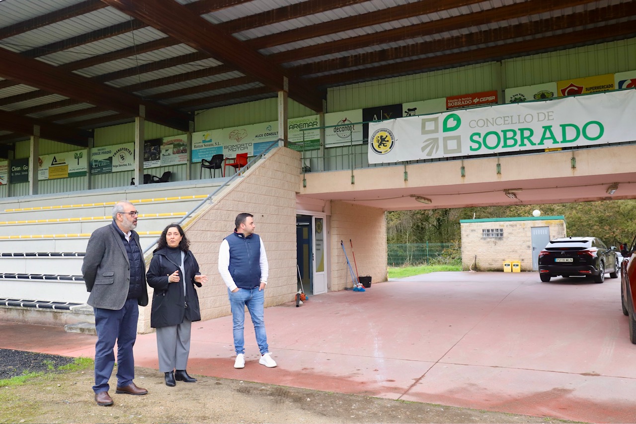 A delegada da Xunta, Belén do Campo, visitou hoxe o campo de fútbol municipal de Sobrado para coñecer as actuacións de mellora da eficiencia enerxética realizadas co apoio da Xunta. O Goberno galego colaborou neste proxecto cunha achega de case 60.000 euros no marco da liña do fondo adicional ao Fondo de Cooperación Local destinado a concellos cunha poboación inferior a 15.000 habitantes.