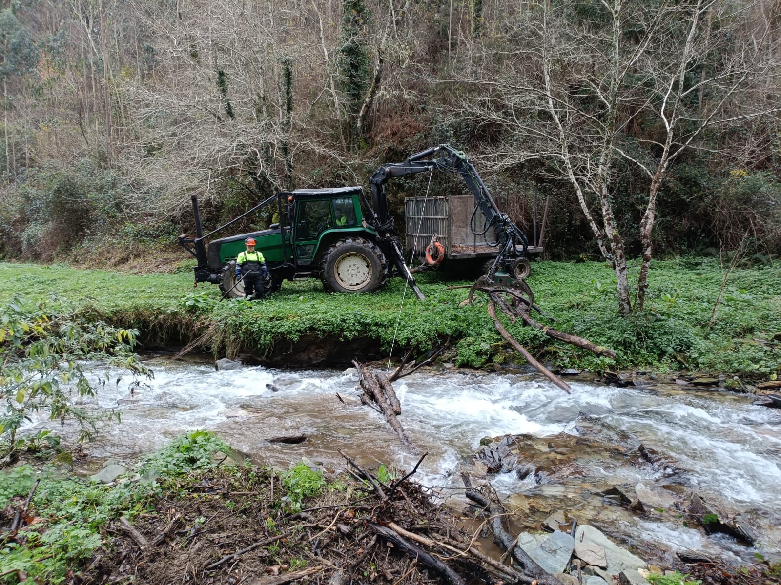 As tarefas que realiza Augas de Galicia prolongaranse durante 10 semanas e inclúen a retirada de árbores caídas e biomasa das canles fluviais para evitar atoamentos