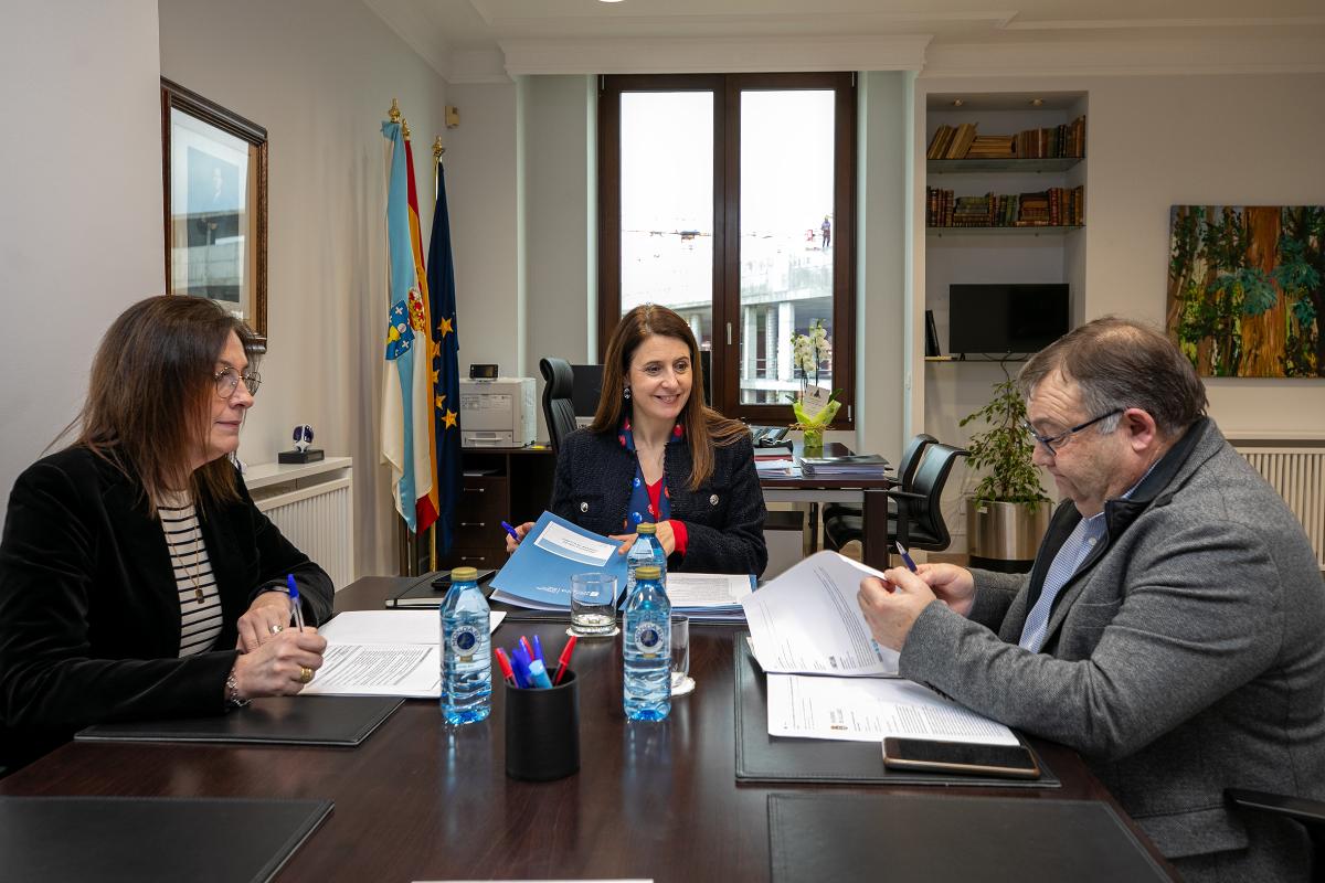 A conselleira do Medio Rural, María José Gómez, acompañada pola directora xeral da Axencia Galega de Desenvolvemento Rural, Paz Rodríguez, mantivo esta tarde unha reunión co alcalde de Paderne de Allariz, Manuel Pérez, para afondar nas vías de cooperación a prol do desenvolvemento rural deste municipio ourensán.