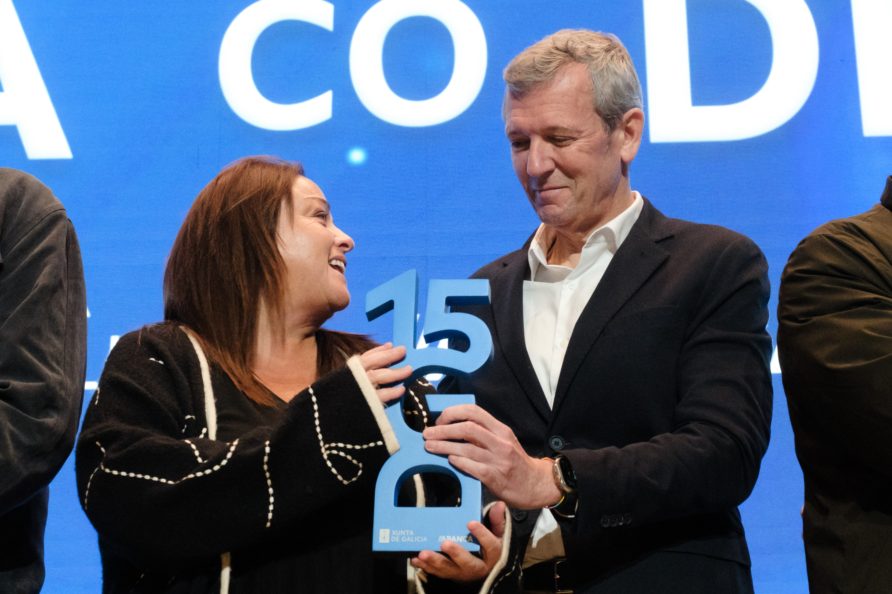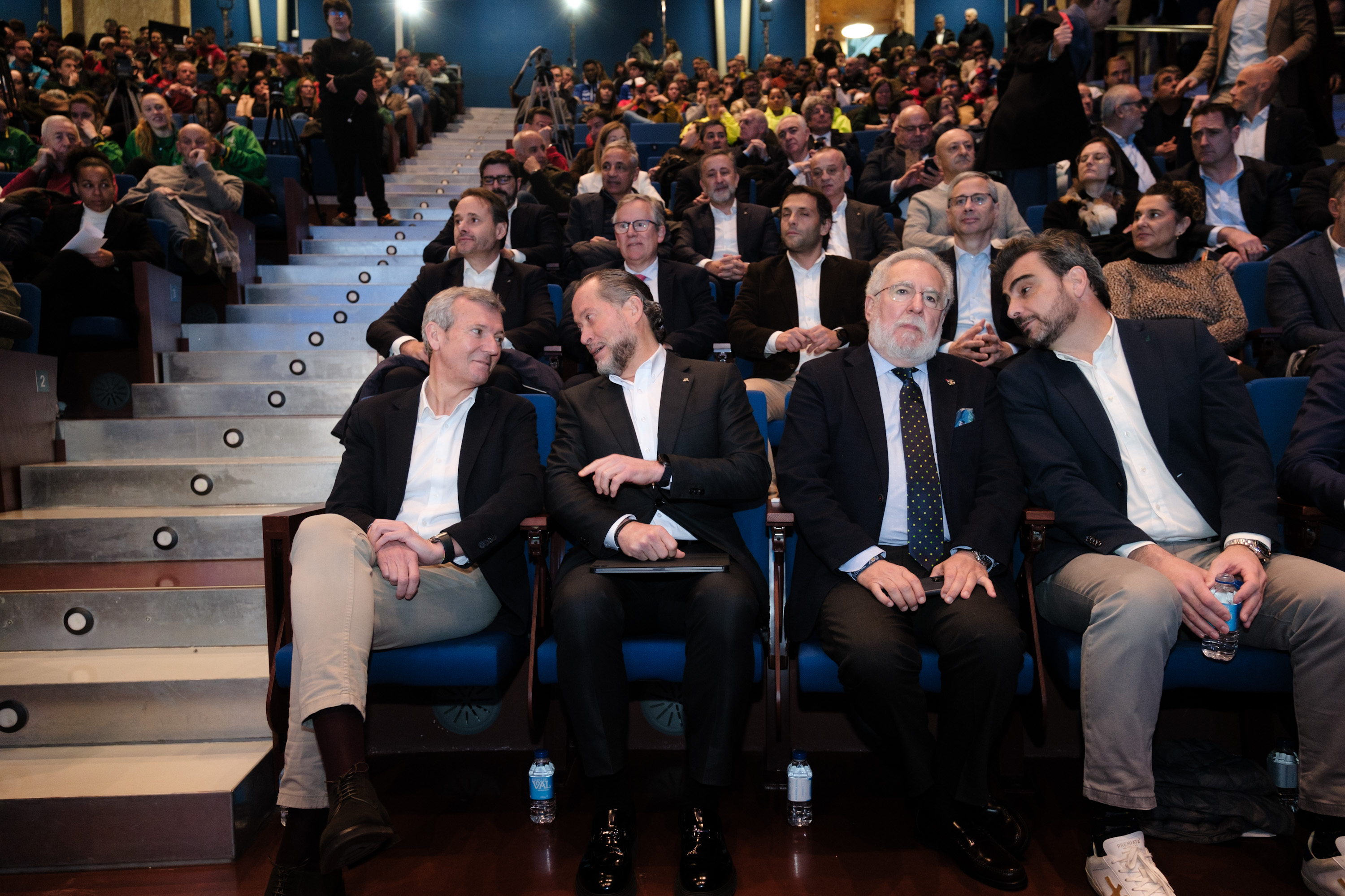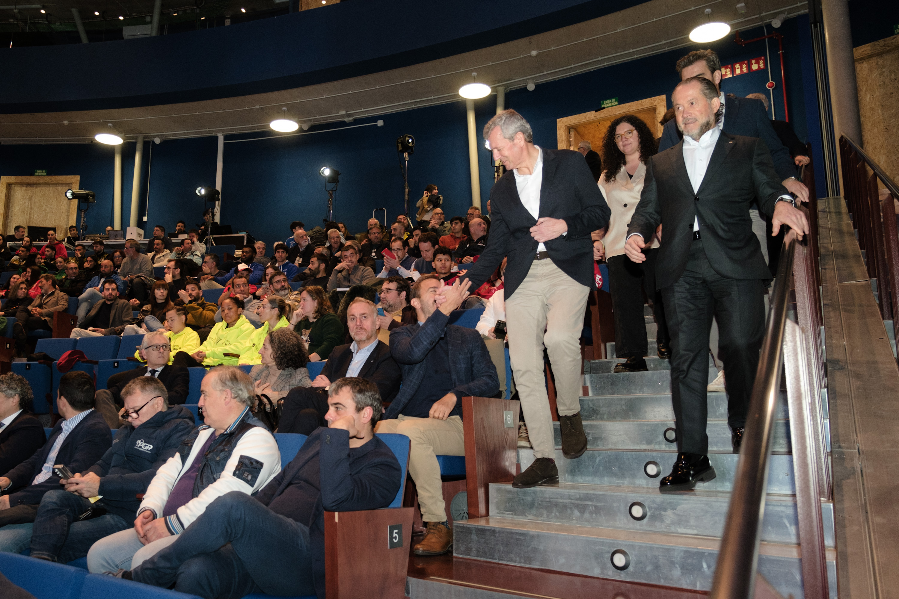 O presidente do Executivo galego, Alfonso Rueda, acompañado polo conselleiro de Presidencia, Xustiza e Deportes, Diego Calvo, destacou a importancia da colaboración público-privada en Galicia á hora de acadar éxitos deportivos.