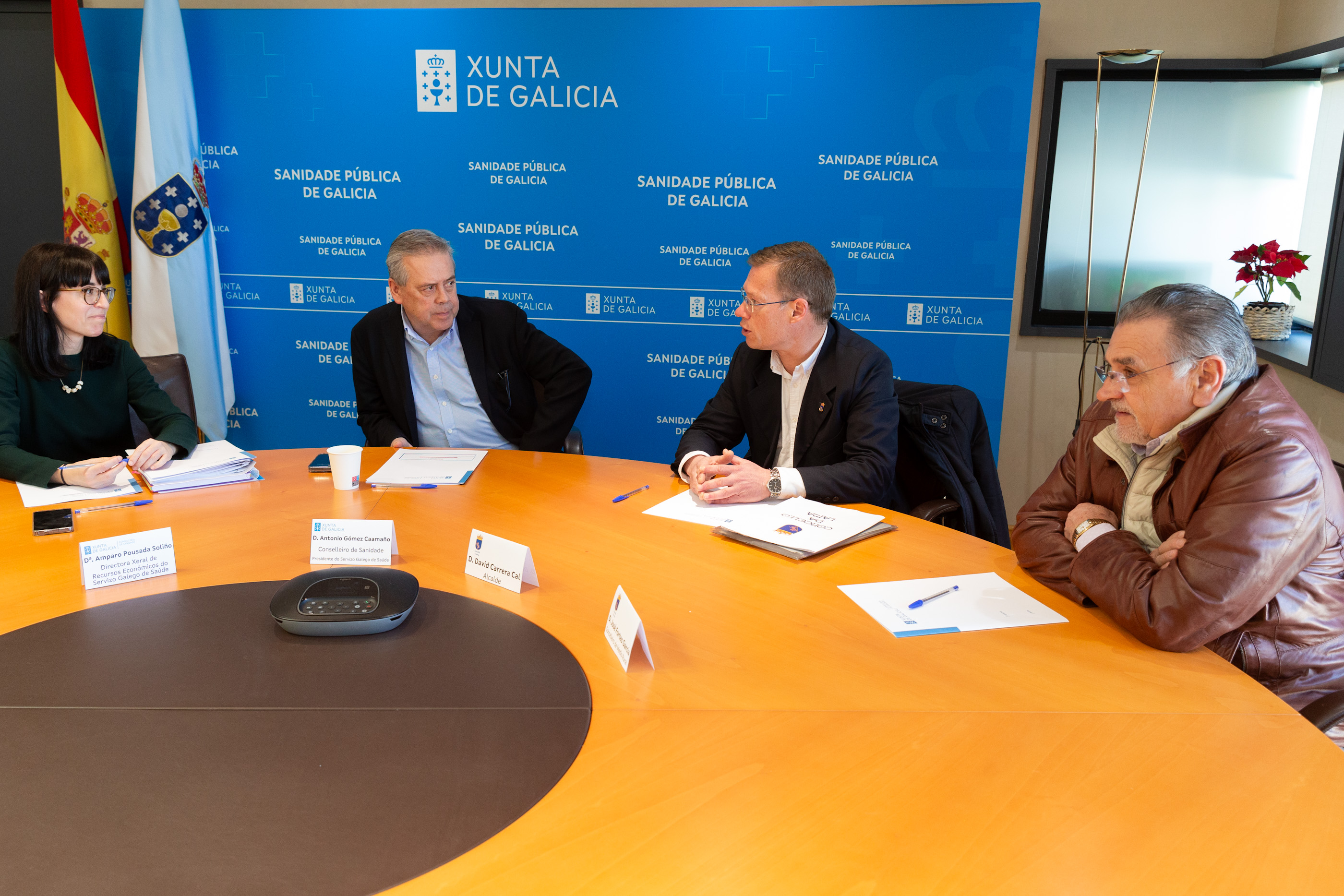 O conselleiro de Sanidade, Antonio Gómez Caamaño, e o alcalde da Lama, David Carrera, abordaron hoxe as necesidades de reforma que presenta o centro de saúde deste concello, de titularidade municipal.