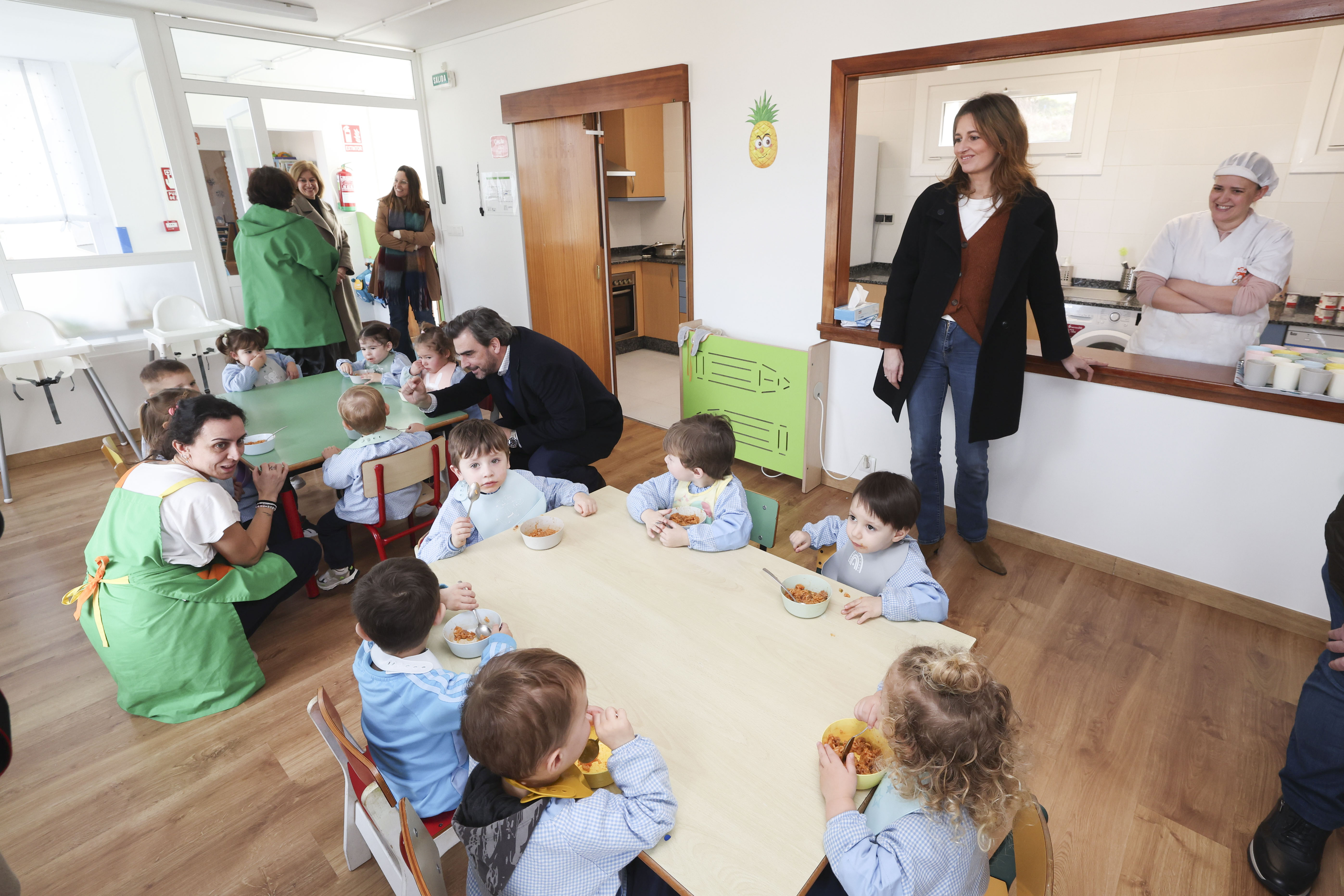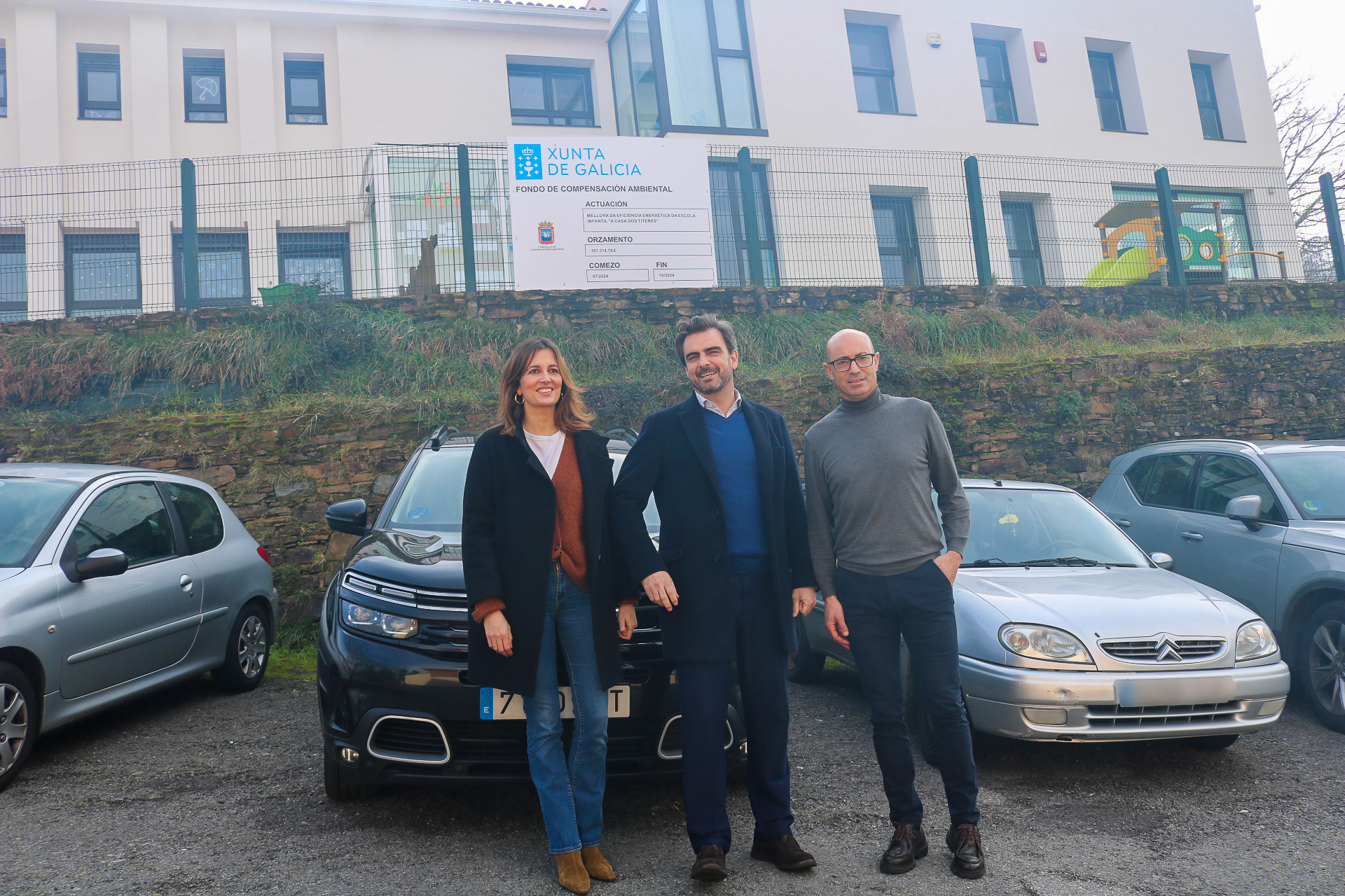 O conselleiro de Presidencia, Xustiza e Deportes, Diego Calvo, acompañado da directora xeral de Administración Local, Natalia Prieto, visitou a escola infantil municipal de Cabana de Bergantiños, na que a Xunta apoiou melloras de eficiencia enerxética cunha achega de case 110.500 euros. Deste xeito, o Goberno galego contribúe a mellorar a eficiencia enerxética do edificio e así reforzase a calidade da prestación deste servizo dirixido a nenos e nenas de 0 a 3 anos e, ao mesmo tempo, facilítase a conciliación das familias.