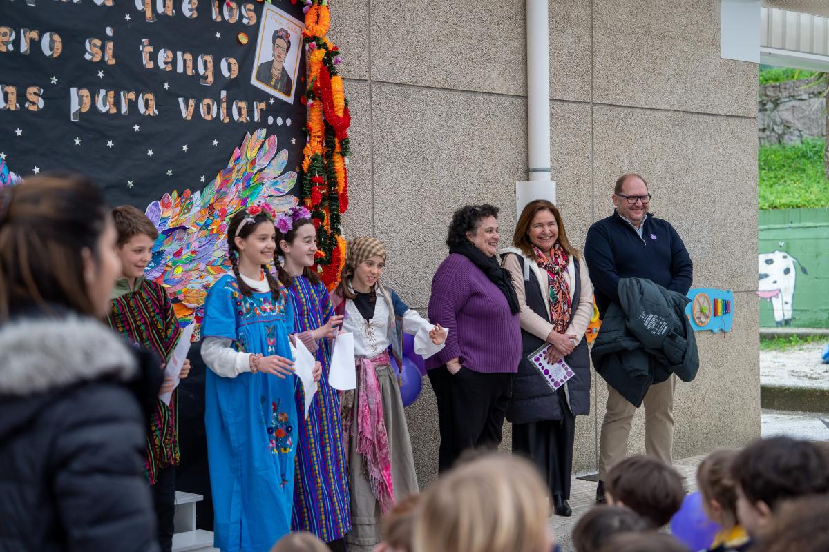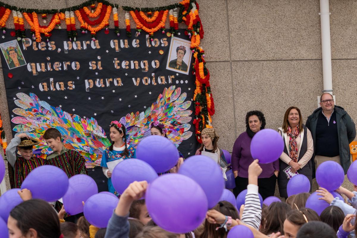 A delegada territorial da Xunta de Galicia en Vigo, Ana Ortiz, visitou este luns o CEIP Javier Sensat para participar nos actos de celebración do Día Internacional da Muller. A representante autonómica compartiu a xornada co alumnado, que procedeu á lectura dun manifesto con motivo do 8M e interpretou unha canción de Rosalía de Castro.